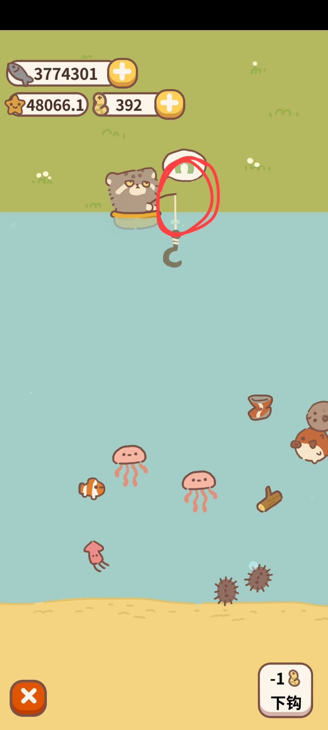 之前总是钓不到海胆和螃蟹,因为他们在最底下上边还游来游去别的动物 今天我发现了绝招!!! 几乎每次都能钓到!!! 先进去看到有螃蟹和海胆出来之后 点左下角的叉❌退出去 再进来,螃蟹和海胆会在右边重新出现 等兔丁第一次从左边到红圈位置的时候!大概就是最中间位置下钩 只要底下没有垃圾,基本百分百勾中不脱钩! 如果上边垃圾位置不好,就还是点叉❌重新进来就好了 海胆要比螃蟹再靠右一点点 多试几次找到位置一