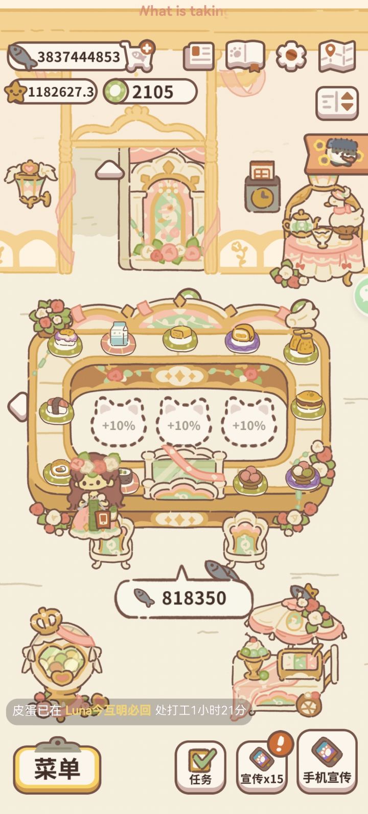 前期鱼干收益最高的两个地方毋庸置疑小费和自助餐厅但是她们都需要加一个特定小费需要看广告领双倍而自助餐厅需要招好友来自己家打工一个好友增加百分之十收益最多三个也就是最多百分之三十的加成另外游戏可以慢节奏玩儿不用赶着走再一个购买前可以注意一下鱼干收益不是贵的就是好的(每个家具的收益都是会叠加的只要购买了就会叠加滋好比桌子有六个一号桌买了五个就是叠加五个二号桌买了三个就叠加三个