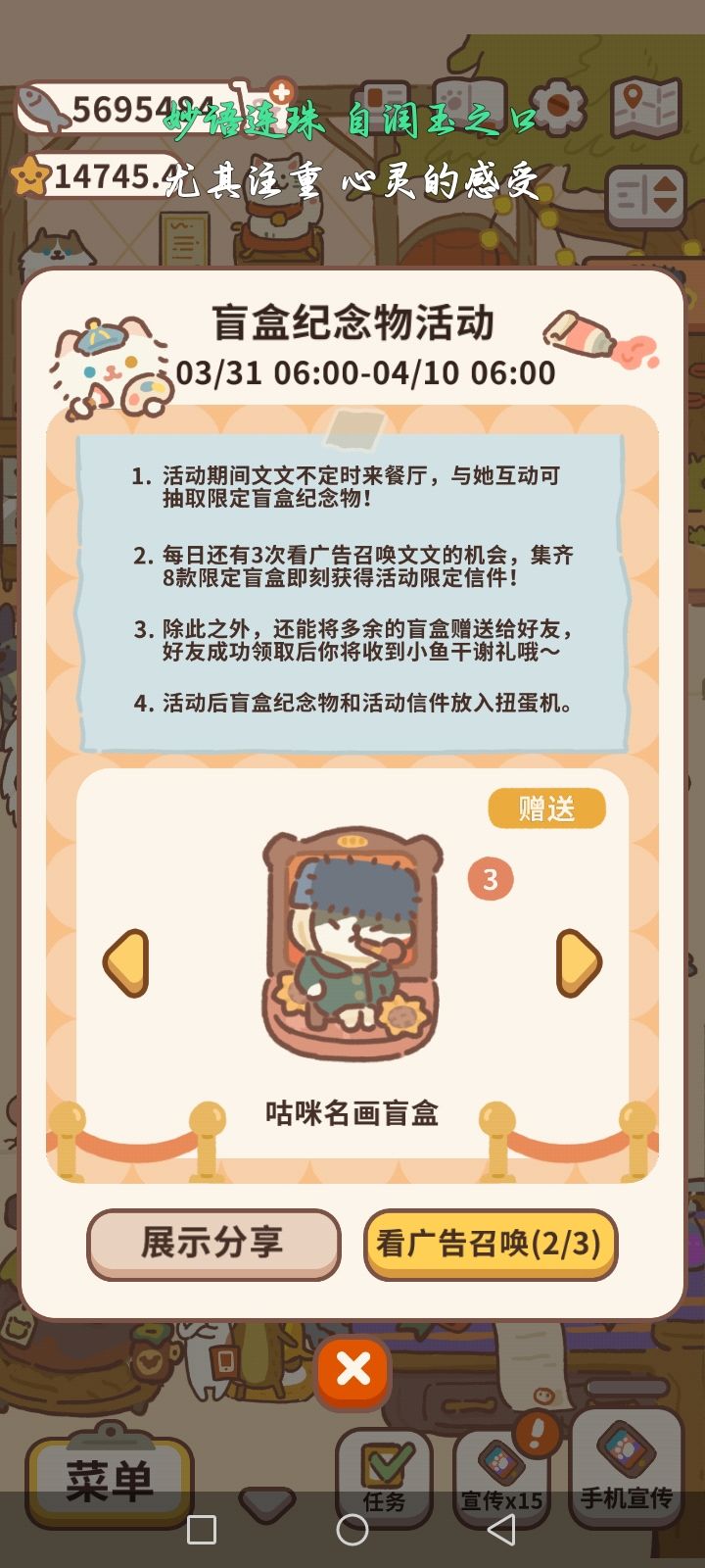 版本号:11.16.0🖼️文文旅行归来,带来了全新的“名画”系列盲盒,快来找文文聊天,听听那些响当当的“人物”故事吧!另外,还听说餐厅附近还来了两位新摊主,不用排队,五分钟就能吃上热腾腾的美食!周末我们一起去看看吧~吃完路边摊,还能顺道去看场新电影,或者打几把游戏机里的新游戏~#发现好游戏 #游戏日常 #今天游戏圈发生了啥 #游戏更新