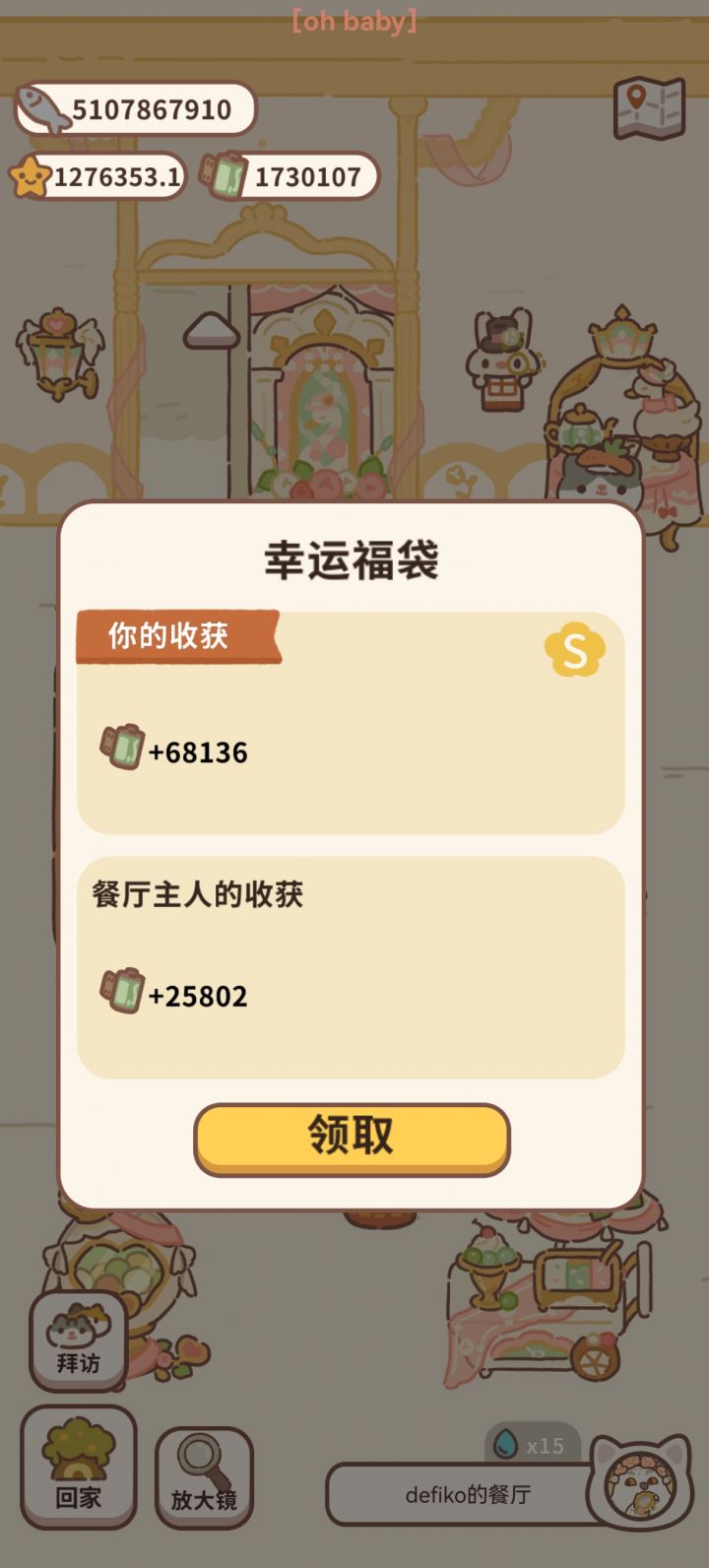 前期鱼干收益最高的两个地方毋庸置疑小费和自助餐厅但是她们都需要加一个特定小费需要看广告领双倍而自助餐厅需要招好友来自己家打工一个好友增加百分之十收益最多三个也就是最多百分之三十的加成另外游戏可以慢节奏玩儿不用赶着走再一个购买前可以注意一下鱼干收益不是贵的就是好的(每个家具的收益都是会叠加的只要购买了就会叠加滋好比桌子有六个一号桌买了五个就是叠加五个二号桌买了三个就叠加三个