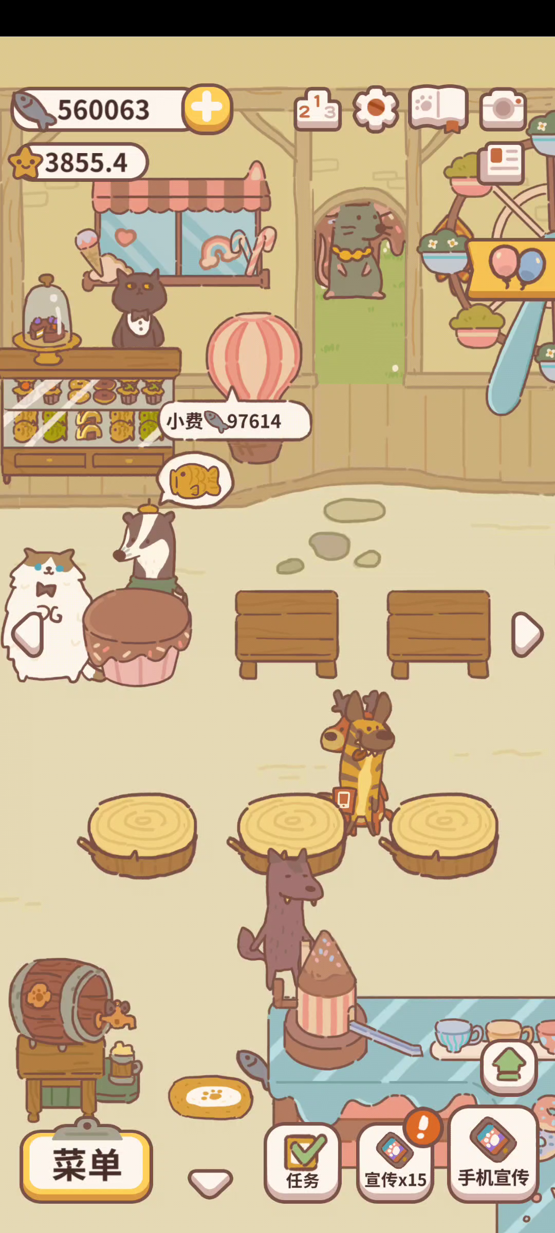 小白兔和大野狼第一次来餐厅,表现的很激动。