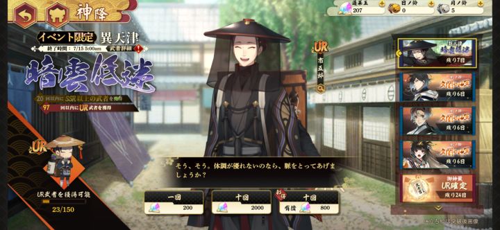 来日服差不多有十来天,情况大概如下坐等大吉 紫樱 心 浪 还有探幽