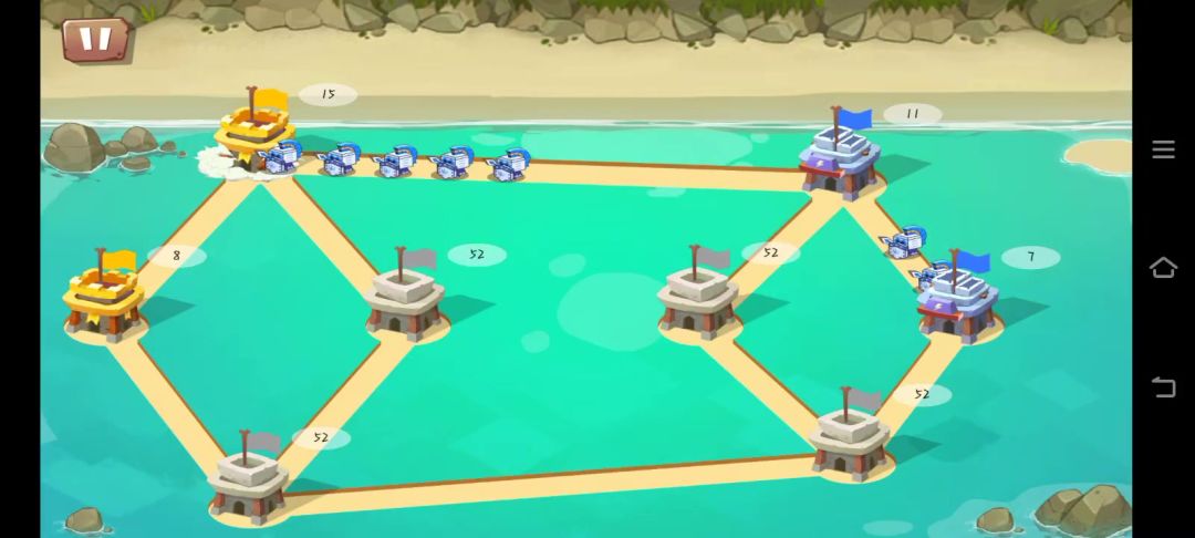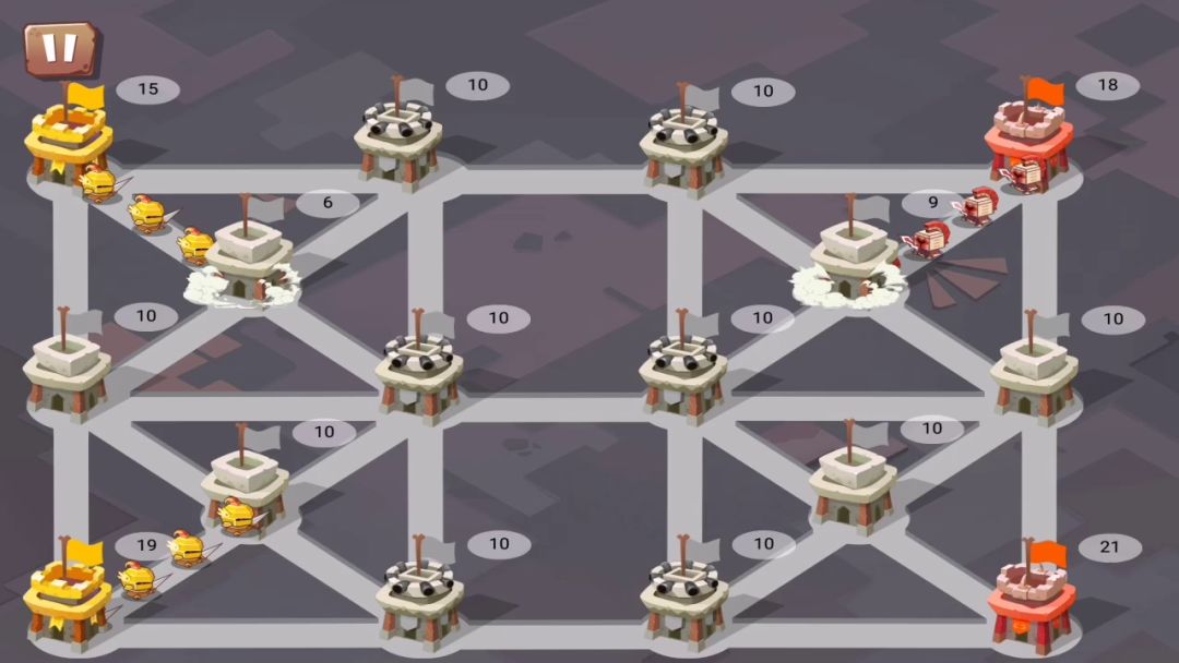 1开局迅速占领根据地 2防御塔不着急打,让人机打残再打。 等到所有防御塔被占领后从两边不惜一切代价血拼,打掉1个就好,2个可能守不住。 3接下来再攒一波兵就能平推了。 4一旦人机三座防御塔兵都>30,就可以做好重开的准备了
