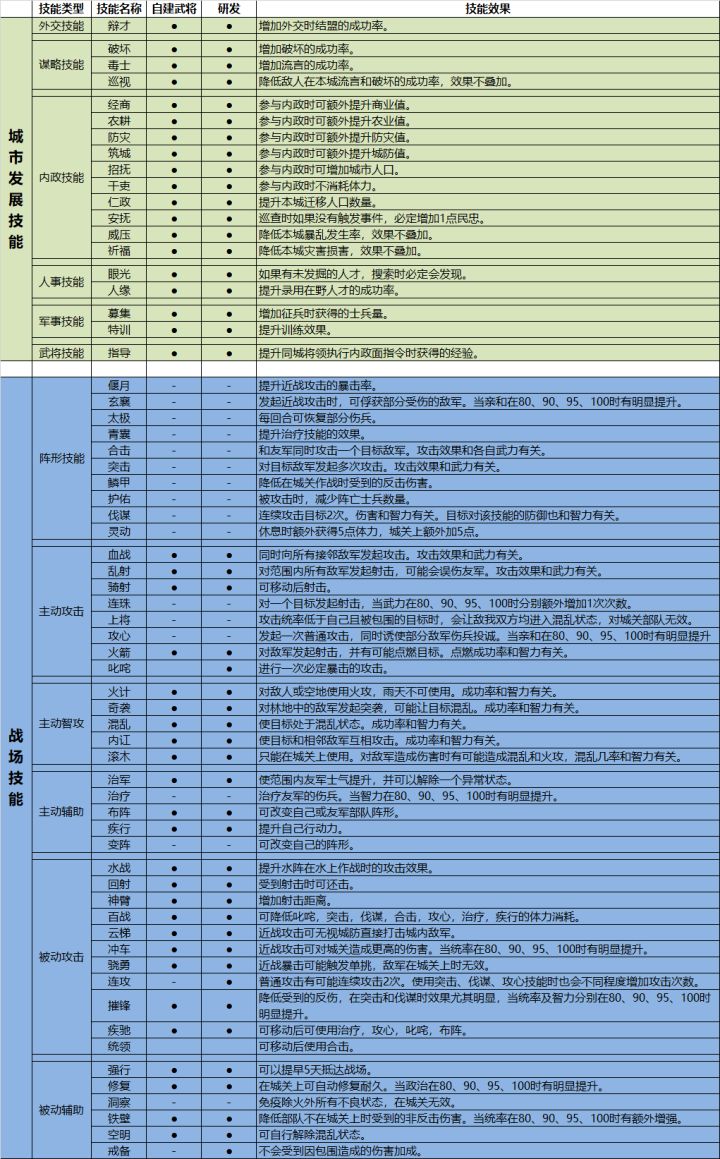 大家好,我是淘气,今天我主要是把这几天收集到技能相关的信息整理下给大家说下,希望能对大家下次测试带来帮助。在正文前我先发下牢骚,今天测试结束了o(╥﹏╥)o,没的玩了,明天IOS端出来了,我们大安 卓怎么办,国庆就要来了,求官方快点出安卓端把。言归正传我们知道在游戏里的技能主要分成2个部分:发展城市的技能和在战场里使用的技能。发展城市的技能又可以分成以下几个方面:外交类技能:主要是针对外交里