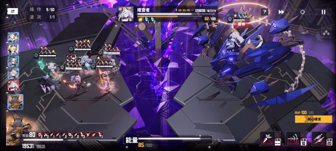 配置: 刃齿(穿甲,我试过切割,完全切不动)、琶音(装填,没装填也行,只要保证你机动值够高)、巴德兰兹(集中)、乌琳(振奋)、进行曲(随意,我带的金刚) 特性方面只需要进行曲有5级,其他角色无特性要求 细节方面: 配速需要琶音一速并且跑在BOSS前面,先使用二技能开盾只要让进行曲吃到sp就行,并保证不会在BOSS第一波攻击下减员。 BOSS第一波攻击会挂上减攻击的debuff,只要刃齿没吃到就行。