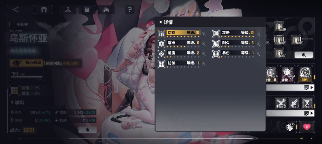攻略包含2种,一种正常刷,一种12操作通关(看运气)。 地狱难度练度要求高,这里提供思路,练度不够1队过不去,可以用2队来磨。有2队能磨过去,先讲正常,后讲12。 阵容[表情_微笑] 黑兔:切割 白兔:切割 巴德:集中 刃齿:切割/穿甲 袅韵:维修 人物要求[表情_微笑] 黑兔[表情_开心]:80级,特性2.3.4,技能3都最低3级起步,芯片攻击暴击+15,其他多少加个6-8。黑兔主力输出,练度够