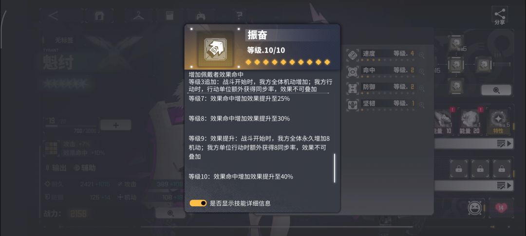 最近不少玩家反映芯片板块引导不足,感觉略微复杂,现借用第七阶段赠送的一套征服套装作为解释对象,芯片一共可装配5片,如图一主词条为攻击加成,可以通过升级成长,副词条为下面四条。这一套芯片的副词条征服等级为均为2级,一套叠加就是2+2+2+2+2=10,既可以激活满10级的激活特性,如图2。其他副词条的激活层数就是各个芯片中出现的同类词条等级累加之和,这就是芯片的机制,至于如何搭配芯片,就看你是什么阵