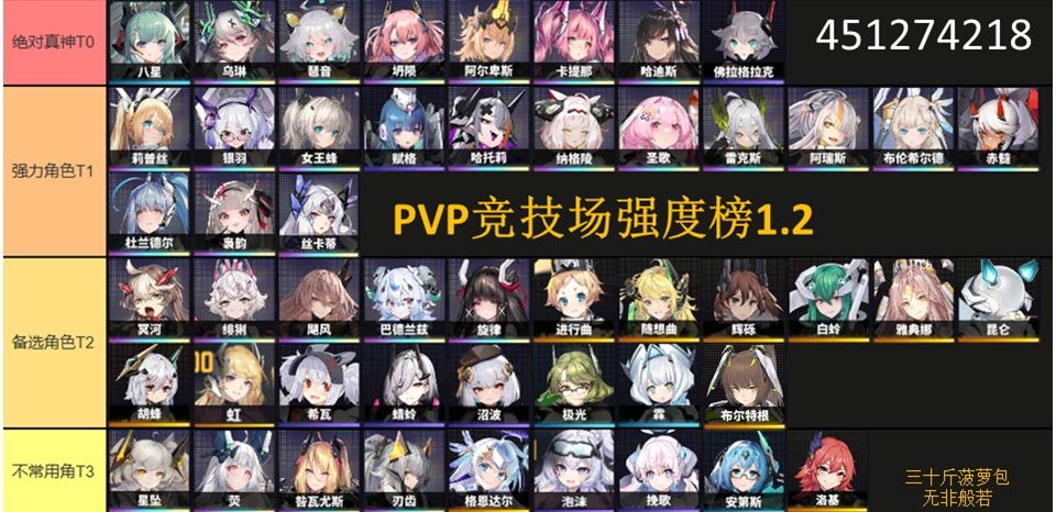 过来tap找找大佬。一直是在某站发攻略视频。 想了解pvp的可以交流交流 牢交迟早要出竞技场相关的玩法。 只有一个国家队储备也不一定够的 多了解一些阵容不是坏事。 (之后会陆续更新,希望别凉了。。。) 以下是跟群友大佬们一起做的排行和阵容供大家参考。 竞技场排行的含金量是肯定有的。 阵容储备可以稳定霸榜。 ps:有新手质疑所以放了战斗面板时236速度的琶音。最快可以240琶音哦(10装填10速度的