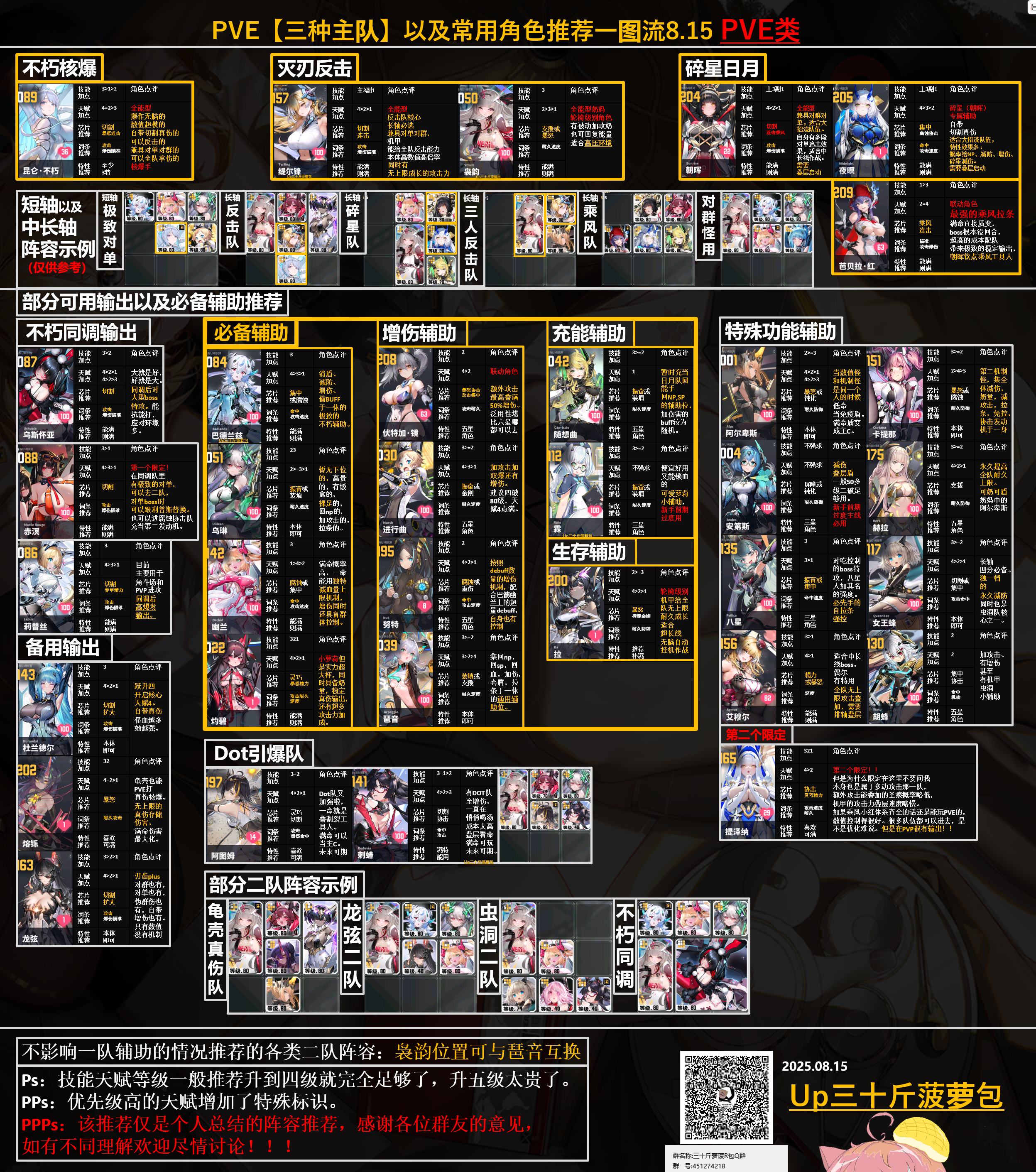 抱歉taptap平时经常偶尔有可能甚至都忘记了也不会看。一些回复不及时流口水[表情_流口水]流口水[表情_流口水] 经常在某站活跃。同名三十斤菠萝包。 球球了 给主包点点关注点点赞不要让主包凉掉了流口水[表情_流口水] 这次是新手推荐配队的一图流。 前期推荐练的,推荐抽的。都在这里了! 有问题随时问,我群很大,玩累了直接睡。 欢迎各位打交交流。 45127。4218 之后会更新日常和基建的一图流。