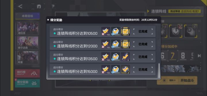 目标一万五拿满奖励就行,只要难度7打死三个BOSS就能有一万七,难度10就交给巨佬们了#连锁阵线