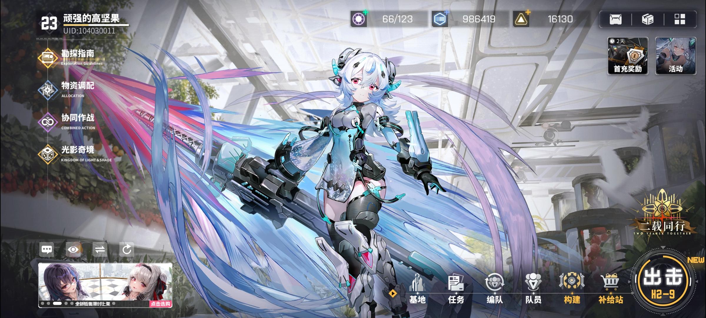 后面的要氪金才能解锁啊,划算确实是划算啊,不谈最后一档,就是这档,新手我记得有个6块可以买三张卡的礼包,完了加上这个还能再多6000粲晶出来,可惜我玩游戏向来都是零充的。新号的体力似乎没我想象中的那种取之不尽,用之不竭的感觉啊,我承认中间为了刷突破材料是用扫荡功能,打了一些前面的重复关卡,但也不至于,体力完全不够用啊。抽池子也是歪麻了,上来第一个本体,虽然说是40发出,但实际上是连歪两小保底吃