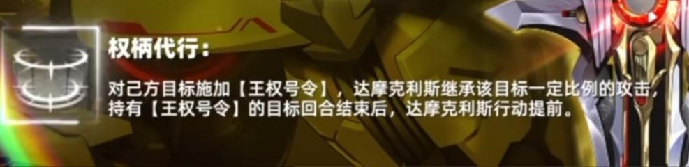 我现在看到继承这两个字就害怕,尤其是可以自选继承目标的时候,如果你不了解“继承”的算法可以看我阿努比斯那篇。 目前暴击伤害最高的是60层赫格尼自带180%暴伤(不会有人拿鸣刃出来说话吧?不会吧不会吧?),赫格尼的暴伤可以转给洛贝拉,攻击力可以“继承”给达摩克利斯,并且赫格尼变脸算是“行动”,能触发新限定的拉条效果。 “吸收”又是一个新概念,跟龙弦和炙夏的“夺取”不同,洛贝拉“退场”才会把攻击力