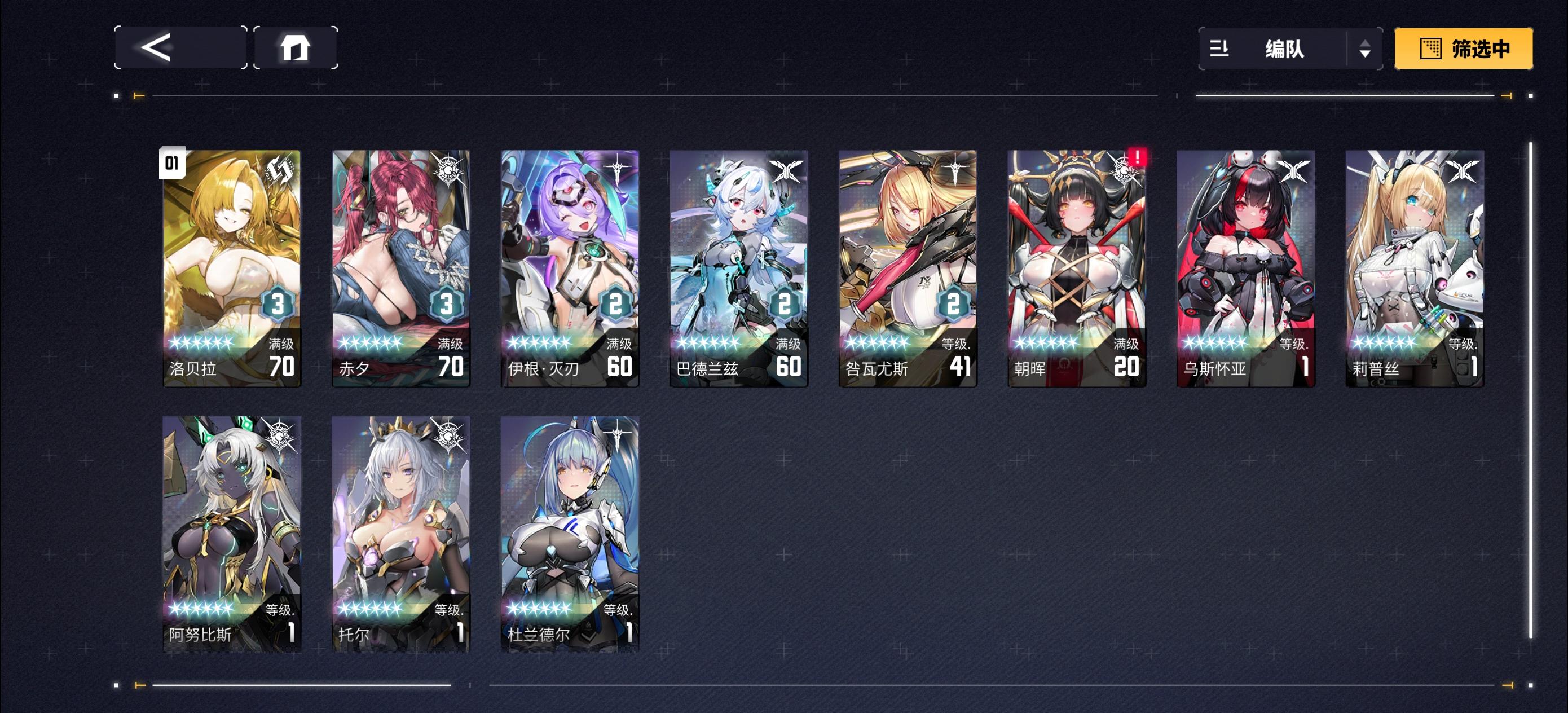 赫格尼版本入坑,当时抽了本体停手,新手自选齿髓配的六星是阿尔卑斯,没刷出巴德加齿髓,陆续补了乌琳琶音 歪的杜兰凑了开荒队,玩到二周年抽了五特洛贝拉(比较黑250抽),乌琳歪到3特(感觉提升不大,后来大佬提醒才知道还会乱轴),歪了CCC 绯利 这些,感觉现在配的一队推主线还行,体力在攒着等活动,到4章困难感觉没啥问题(实测到4-9有点扛不住了,打不满星),自选箱子没开,想补反击队无从下手,差的角色和