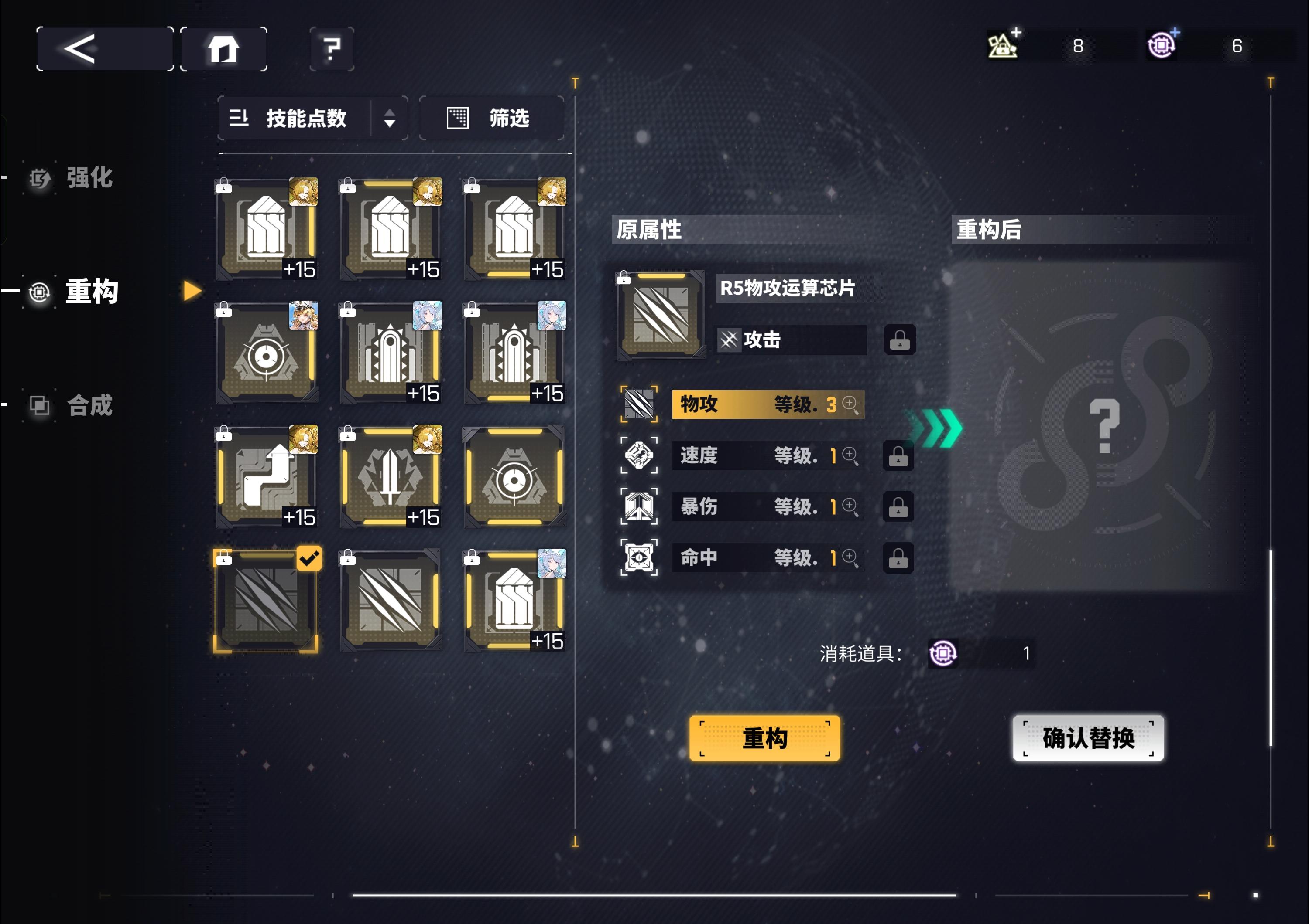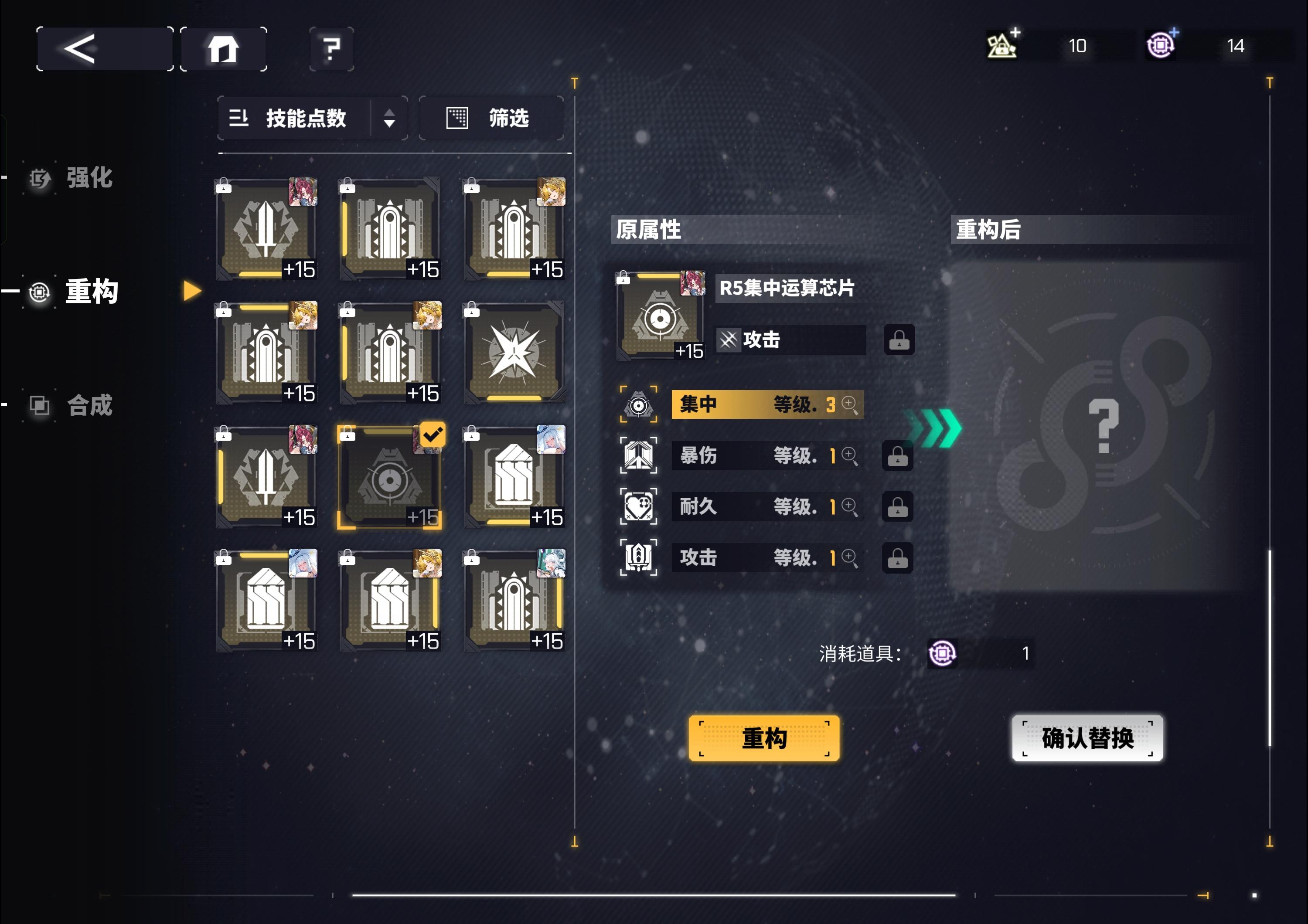 大佬们,这个游戏培养顺序是什么样的呀?先拉一个主c还是整个队伍平均升啊?然后那个芯片除了洛贝拉,其他的我没找到攻略我现在一队是是金神威,金振奋,金集中,金灵巧,金装填。物攻,屏障,穿甲,征服,神力也都有一套金,在二队,全按自己感觉来