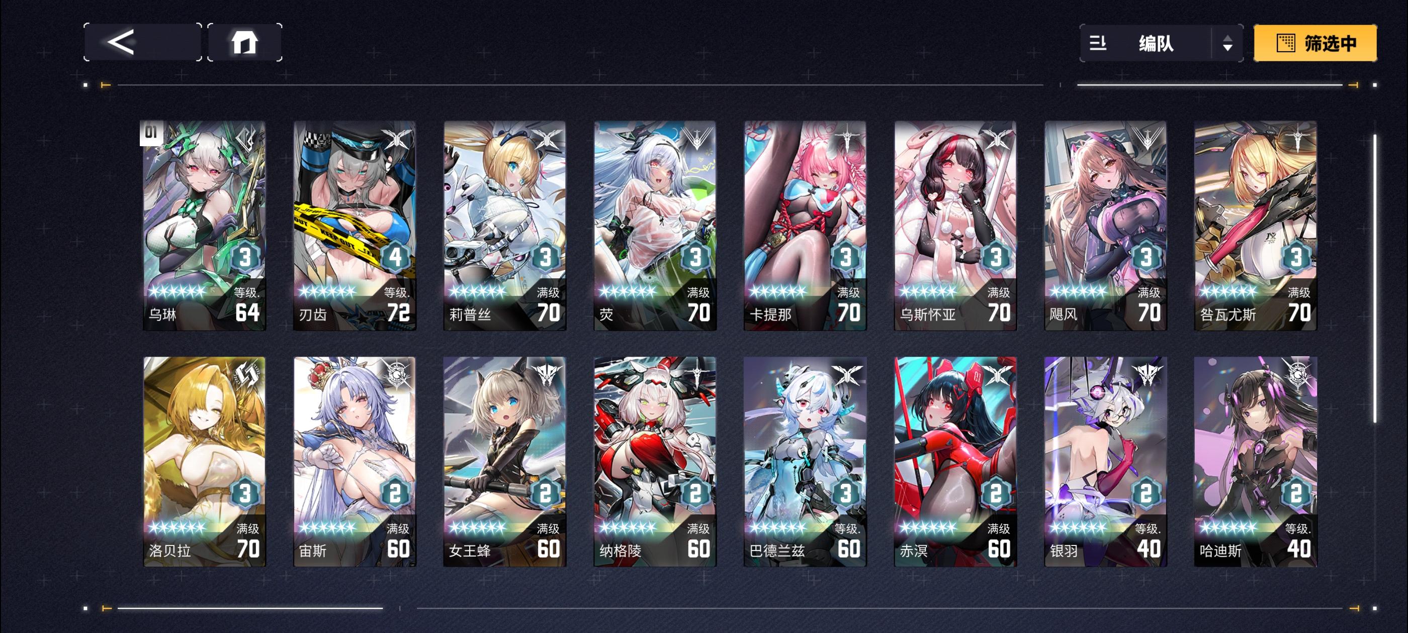 回坑玩家,目前有这些六星。有大佬帮帮我怎么配对吗目前卡在主线第三章了,求指点。