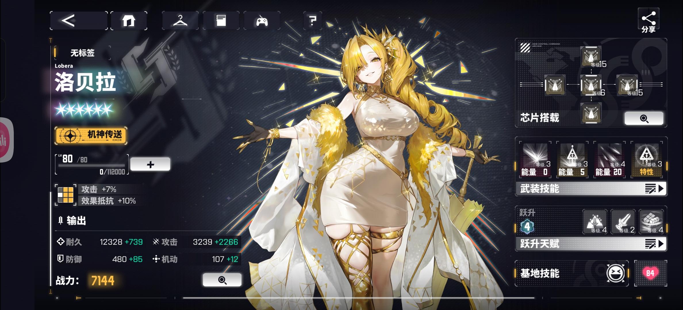 洛贝拉,属于新阵营【联域】,可召唤机神,更多角色详情可左转官方发帖。以下仅代表个人观点,欢迎一起交流。先来简单总结一下,绝对的输出角色。洛贝拉技能比较简单,主要的机制集中在特性里。——可夺取队友一定比例的攻击力。从介绍来看,可多次夺取,可能是【当前攻击力的百分比】,且因为退场之后会返还,所以该部分攻击必须是永久的,临时增加部分不计算在内,像【伊根、提尔锋、赫格尼】等永久增长的攻击力可被夺取。但