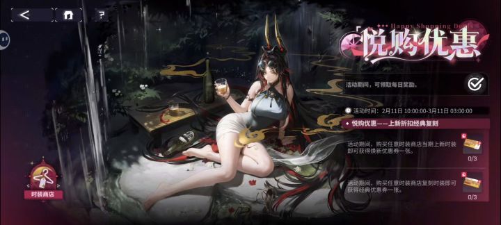 交错战线2026年的新年活动,在主页右上角处《悦购优惠》有具体说明,每日登录会有红点显示,可以签到领取一些星币。 有购买皮肤意向的总队长们不要错过了!优惠券分为焕新优惠券和经典优惠券。 焕新优惠券只能用于有“上新”标识的皮肤。 经典优惠券只能用于返场皮肤。 两种优惠券各三张均等效230粲金,都需要先购买一款启动简单来说第二款皮肤开始优惠230,到第四款。 在活动期间可以省230*3*2=