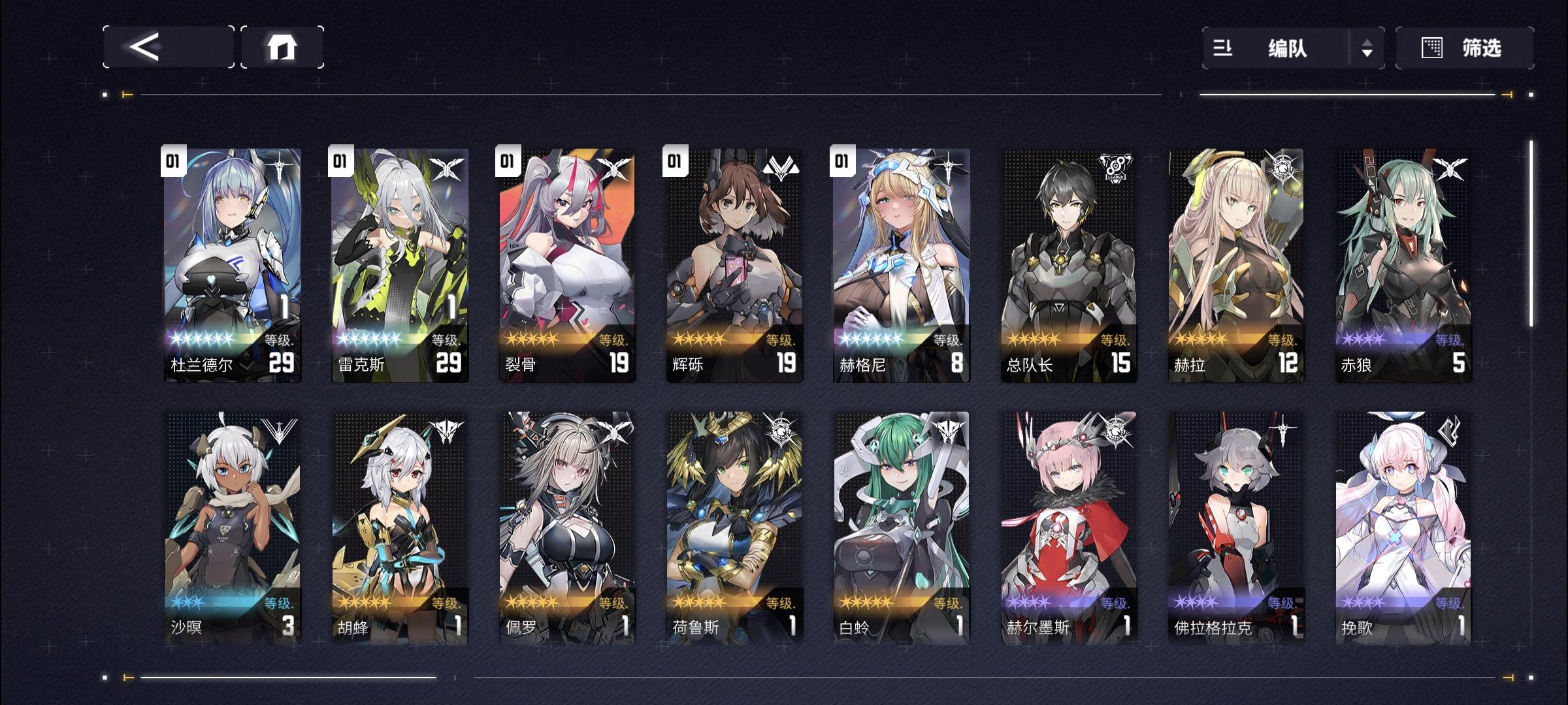 先说一下账号情况吧,飓风阿尔卑斯开局,建号三天,目前进度困难2-15,普通4-2,正好拿了2w6粲晶没有动,等着开4w粲晶档。继续推是能推得动的,嫖个大佬的缇尔斯普通本基本没啥压力,困难本第二章勉强能3星。但是目前所有的抽卡资源都被用了,蓝图和微晶都没攒,赫格尼池子歪了两次(阿图姆和阿努比斯),想着豆大保底了,不如留给新年版本,然后看攻略说新手要抽巴德,就去抽新手定向池子,砸了个保底,歪了个刃