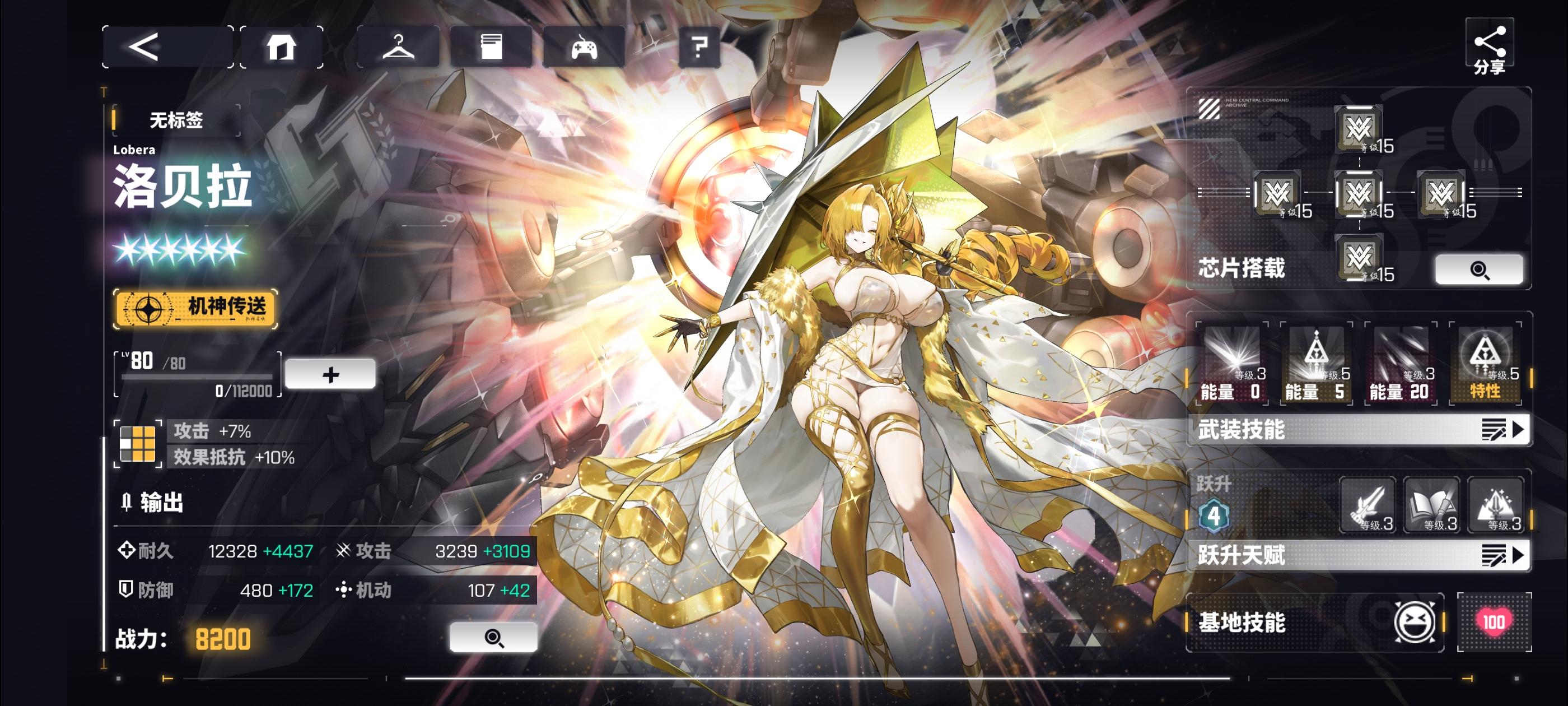 11回合机神四个大直接干翻八百万血的boos,超模这块boos是专门给洛贝拉定制这块我的配置是乌琳带集中副词条攻击。波塞冬带散装芯片,像什么灵巧切割这些主词条带攻击的,副词条也带攻的,尽量提高波塞冬的攻击力。进行曲带振奋。赤夕带切割这些有加攻击的芯片就行,根据生命值奶人这块还是牢交的奶妈太权威了。洛贝拉带神威是毋庸置疑,可惜没有10+10,刷了小半个月才10