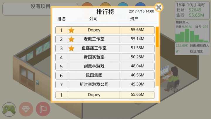首先来发我最拿手的模拟类游戏搭配内容我就不说了太多了。前期用不着太多科技尽量多砸粉丝中后期用上科技后评分会更高甚至10满分。
