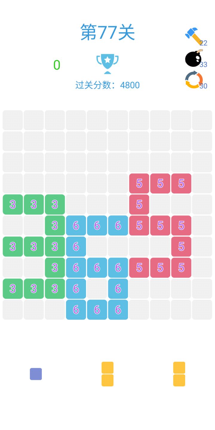 修改了方块的随机概率,几乎很小概率出现两个3*3的方块了,同时出现三个?如果是,你可以去买彩票了。哈哈哈。在下个版本就会更新。希望大家喜欢,有什么建议都可以留言,您的支持是我前进的动力,谢谢大家。另外,正准备开始做一款新游戏。加油加油。
