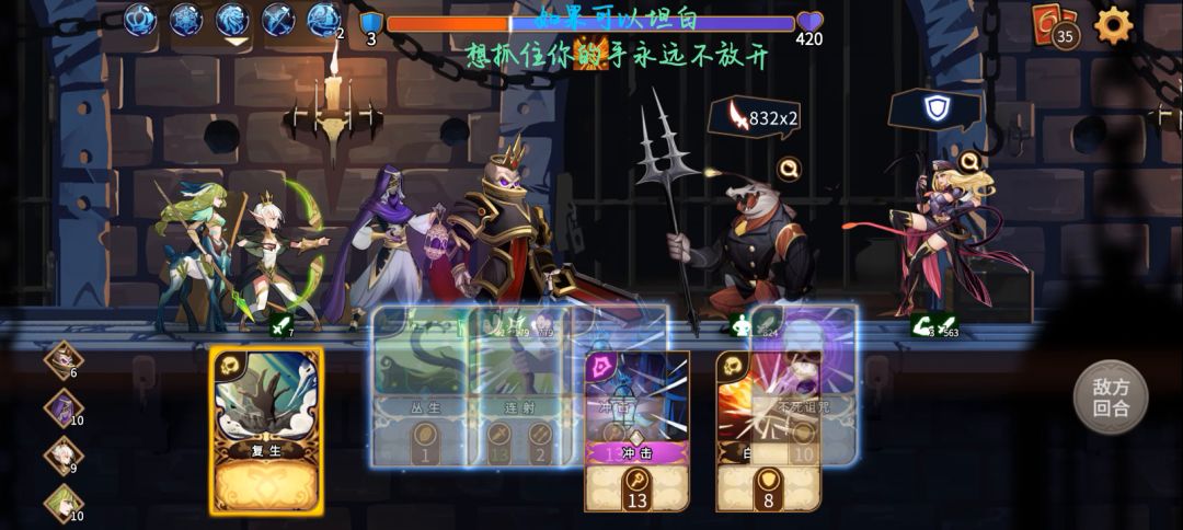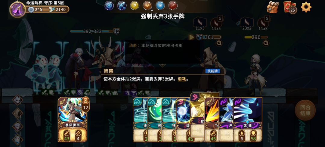 【bug反馈】上一场战斗结束了,但是剩余的卡片还会残留再下一场战斗。占着地方,打不出去。也还能玩。然后刚才抽了个天使卡要丢弃三个牌直接卡死了,点哪个卡都没法选中。