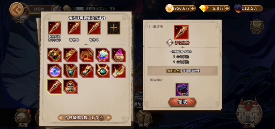 1,显示错误,如视频所示,小退恢复。 2,晚上00:30点了锻造,到早上8:00按理应该是完成一个,然后第二个剩余半小时。实际上第一个领取后第二个才开始计时。