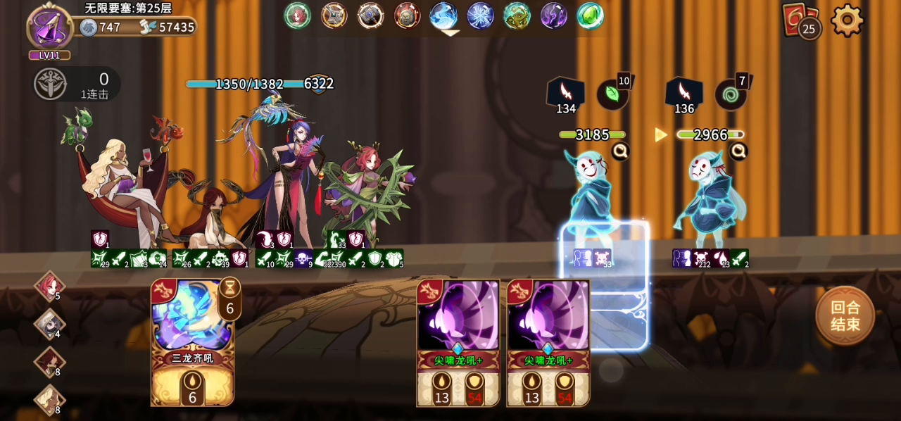 简阿姨地狱横行…… 本来指望着蔷薇无敌甲一回合,无奈伤害不够…… 换了骷髅王,盘算着能多苟一个大招,就多一回合输出…… 一发入魂……直接打穿了……
