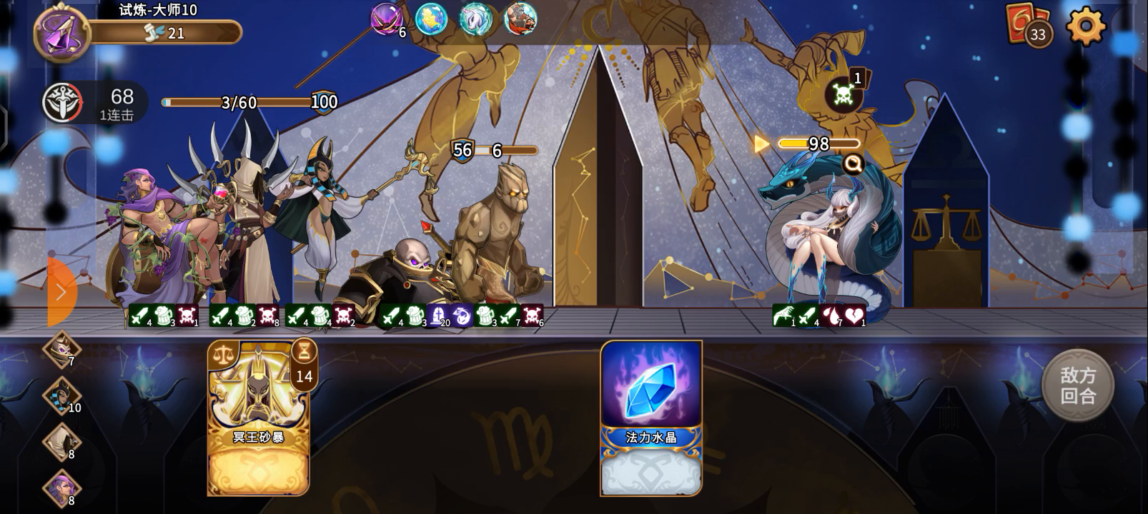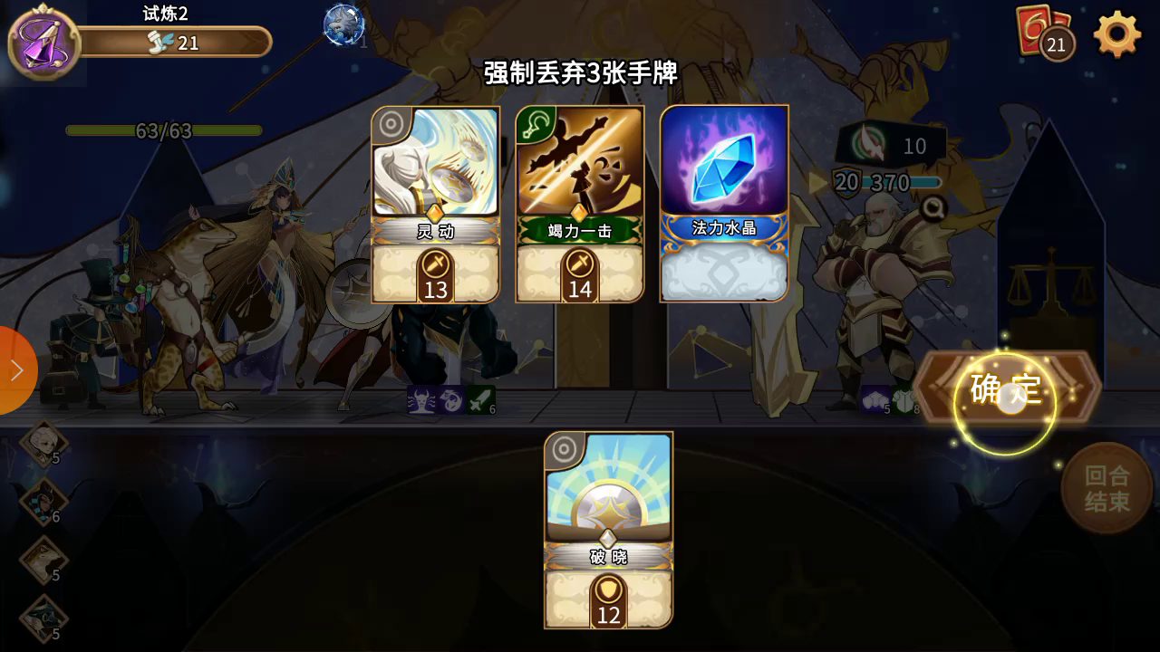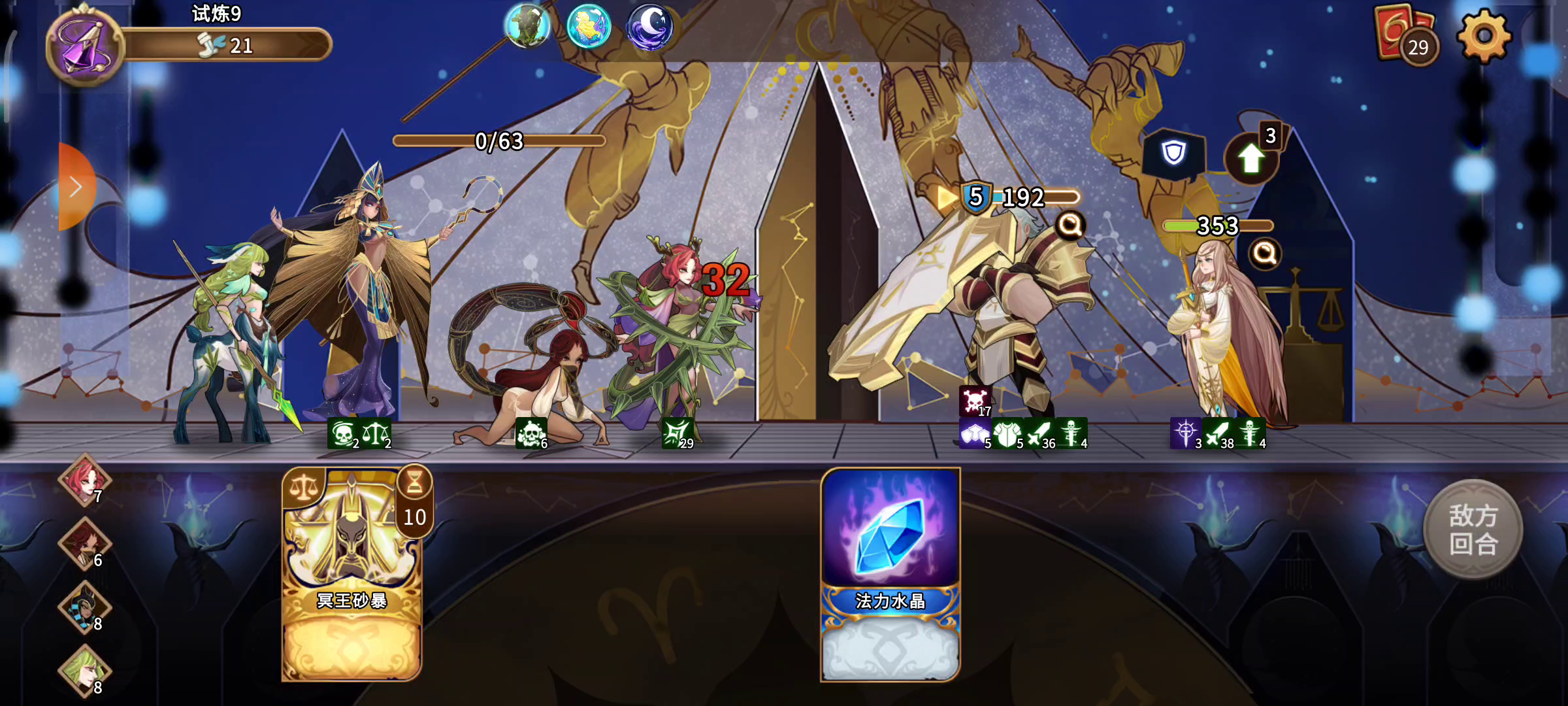 核心卡,法杖,反流。反流卡固有的情况下,可以拿法袍,无限拿点击充能,防御牌无限拿藤甲。双子牌无限拿镜像。开局的两张幻灵不要丢弃,强化过后迅捷的属性有时候可以让你一回合结束战斗,早知道雷神阵容要做到一回合杀敌,还是比较依赖双子大招和雷神大招的,所以这两张卡留着增强过牌能力。 核心魂,法杖装备固有如果可以的话再固有法袍装备,反流攻击牌固有,有石中剑情况三倍暴击魂,首回合易伤魂(爬塔基本一回合杀掉),易伤增加百分之50魂,镜像多复制一张魂,各种抽牌巨人魂(注意副作用情况,举个例子,比如信标满级了可以不要信标经验去增加抽牌数量)。僧侣之魂(锦上添花给你不一样的体验) 纪念一下雷神的疯狂输出,雷神5星,速度跟不上,该换阵容了,喜欢的小伙伴可以试试,挺无脑的。😂😂😂