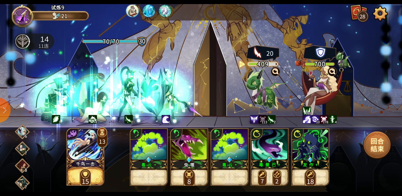 有水晶的情况下,再动之后毒云,会留下一个毒云技能不会消失。打出任意牌一次,毒云可再释放一次。太无聊了。哈哈哈哈