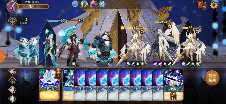 打梦魇认真看机智强制出牌次数刷恶魔牌,就要在前面的回合存好水晶刷到法王的技能没刷到前不能乱出牌,卖血,骷髅有三条命注意恶魔牌,法王技能加存好的水晶和水晶牌加上加强的增幅一回合可以打两三千伤害,等把使者秒了就好打了,蓝色是物免绿色是法免持续两回合换一次,蓝色的时候打输出注意是否有攻击意图,注意加盾控好自己的血量,然后就看好换状态的时机六回合内可打赢(六回合包括两回合绿色法术免疫)因为法王阵容纯法伤!不给出牌或者要扣血的恶魔牌夫人的恶魔学识打出!