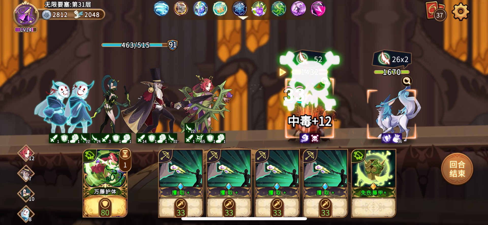 昨天看到一篇攻略,要塞从20直接推到了60感觉根本就没有任何压力,除了墨迹一点 一回合能堆8000多层毒,什么法毒物毒都弱爆了,虽然根本没有触发过毒。。目前没碰到能抗住伤害的小怪现在15区榜6 今天下班后试试看极限能到哪