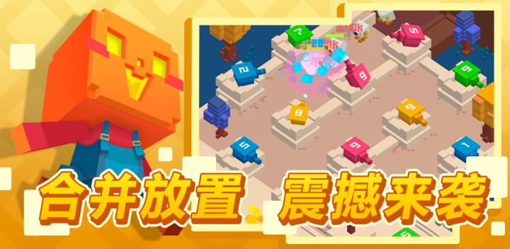 挺住方块君是一款以方块为主人公,通过不断的合成和升级方块,消灭怪兽的游戏。
