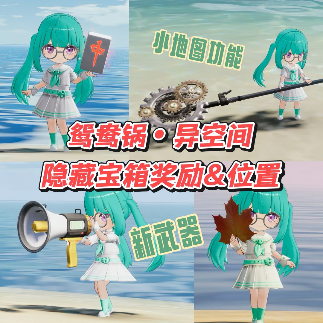 以下是鸳鸯锅世界异空间隐藏宝箱奖励以及宝箱位置,宝宝们可以根据自己的需求前往获取[表情_开心] 田园白玉锅:麻将(武器) 什锦卧雪:解锁•小地图标示出文件的位置 粤香蒸堂:齿轮巨斧(武器) 菌汤红辣双拼锅:解锁•小地图标示出资料的位置 过桥赏宴:解锁•小地图标示出转移地标的位置 青蔬宝塔:解锁•小地图标示出磁带的位置 福寿小院:喇叭枪(武器) 财圆滚滚:解锁•小地图标示出书籍的位置 大蒸笼:枫
