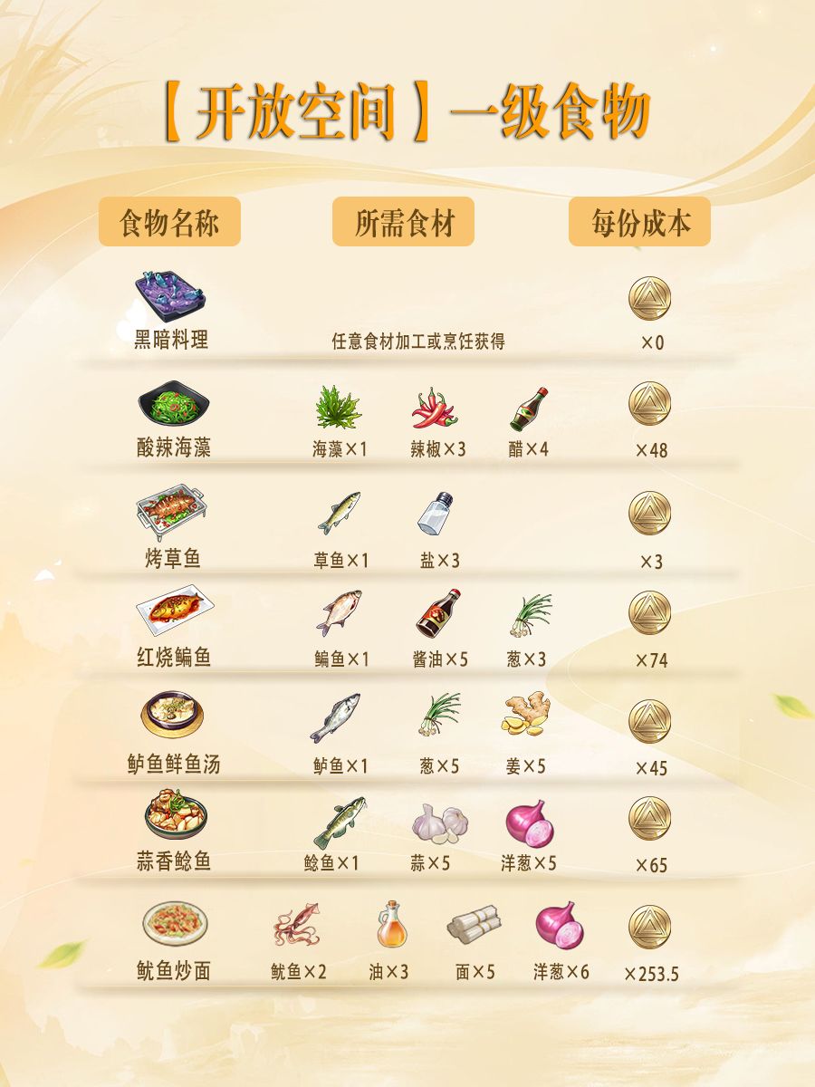 💜整理了1级—8级食物! 从食品名称、所需食材再到每日成本!超级详细希望对各位朋友有所帮助!(要赞金币哦) 💜食材可以通过购买、垂钓、(探索)等地方获取! 👇下方游戏直接下载即可,及时获取最新活动及资讯! #游戏种草计划 #单机游戏 #游戏资讯 #开放空间 #多人联机 #模拟经营 #开放世界 #适合女生玩的游戏 #少女心游戏安利 #游戏安利 #开放空间 #开放空间游戏攻略 #开放空间攻略