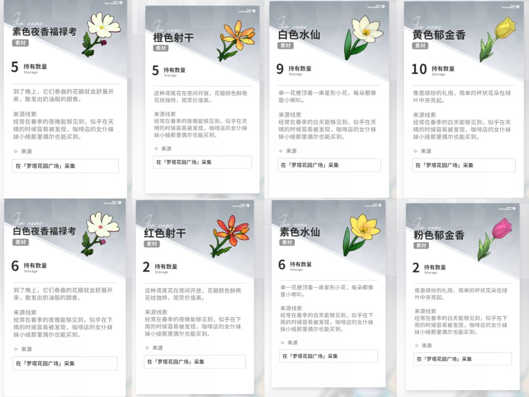 罗塔花园采集图鉴自查表 (四季版)