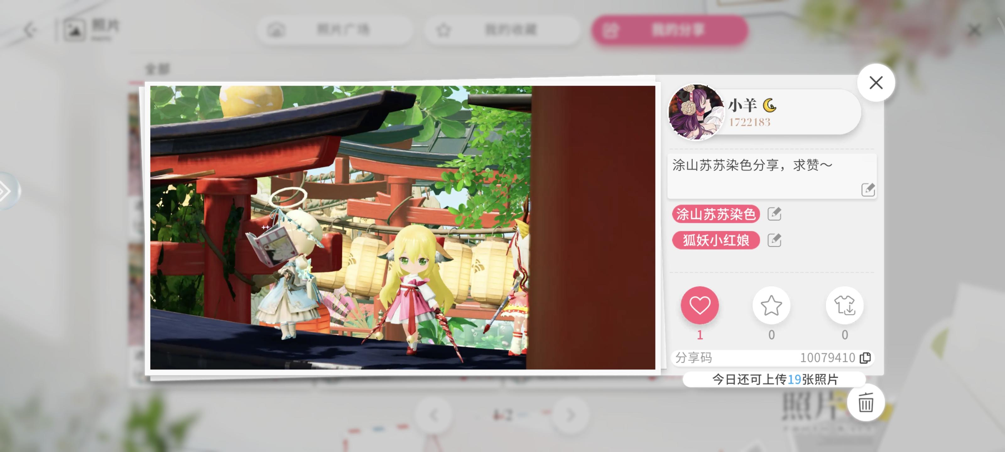 照片墙搜索UID 或者图中分享码即可 #开放空间 #开放空间染色 #狐妖小红娘 #发现好游戏