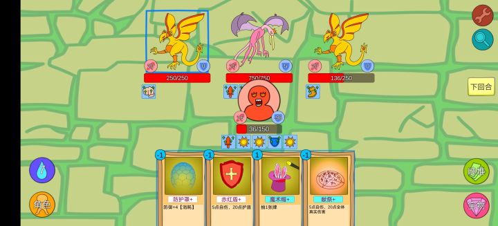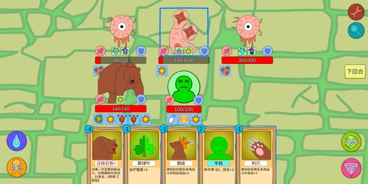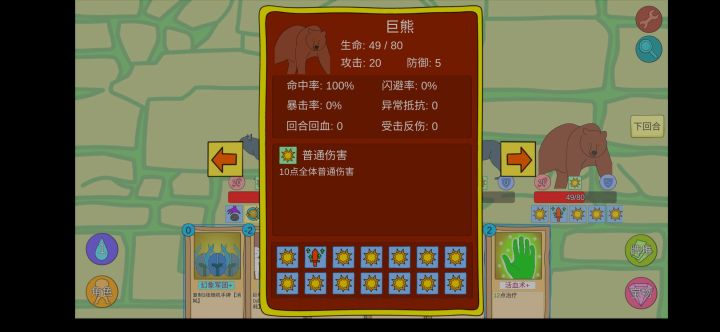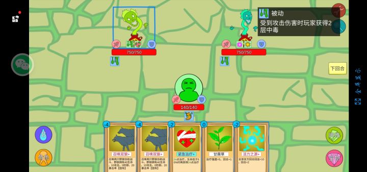 右边的受到伤害,玩家中毒+2,每3回合来一次中毒层数*3真实伤害,左边的死亡时玩家中毒层数*2。这叠毒叠的飞起,分分钟叠几时层度,怎么扛?而且中毒不是减益效果吗,为什么不能驱散?我运气最好的一把快速秒了左边的,吃第二次中毒攻击的时候才22层,但是再打右边的一回合能叠2~30层中毒,2回合就GG了,这BOSS德鲁伊能打?