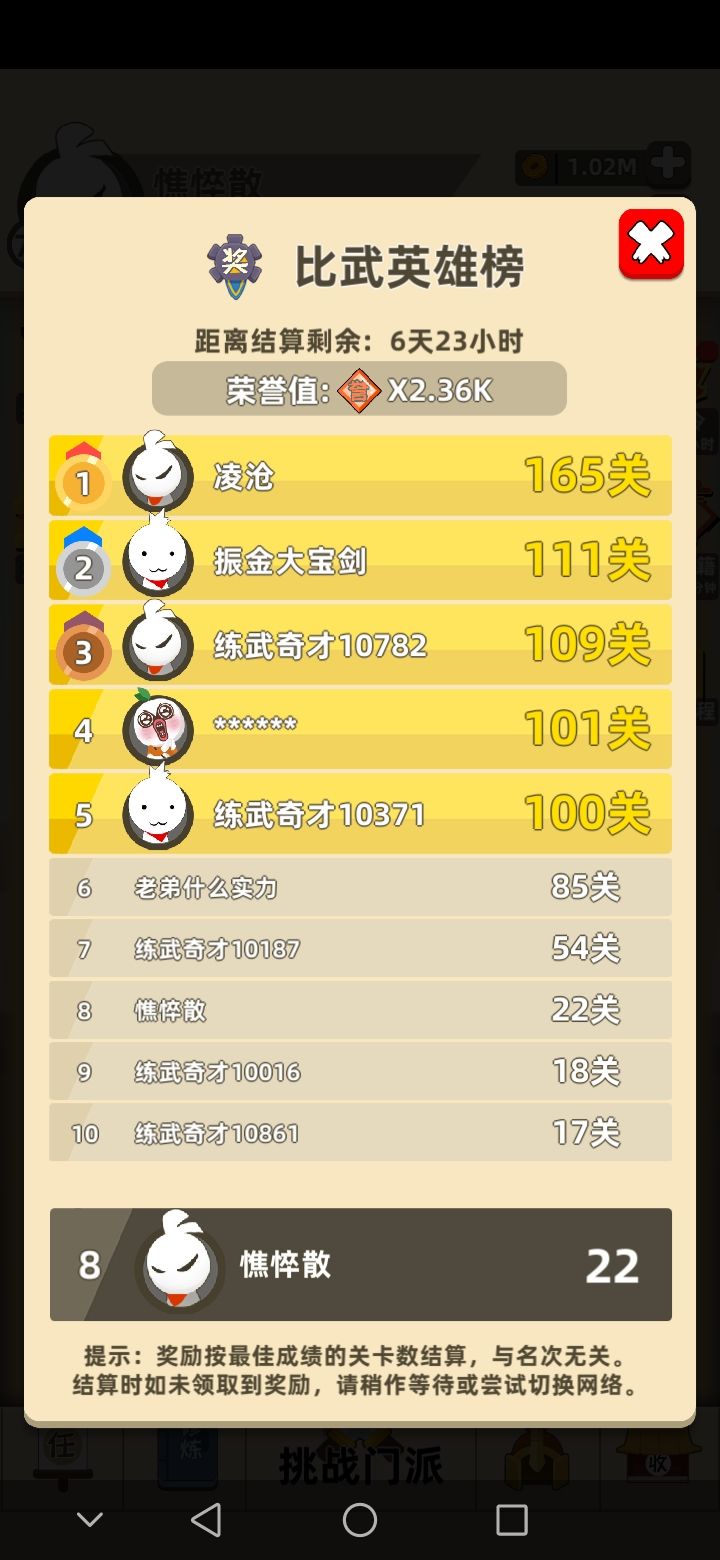 4.武林大会,小小的吐槽一下:排行榜上的人都是疯子吗?打这么多关干嘛?我都是打到220关直接自杀。