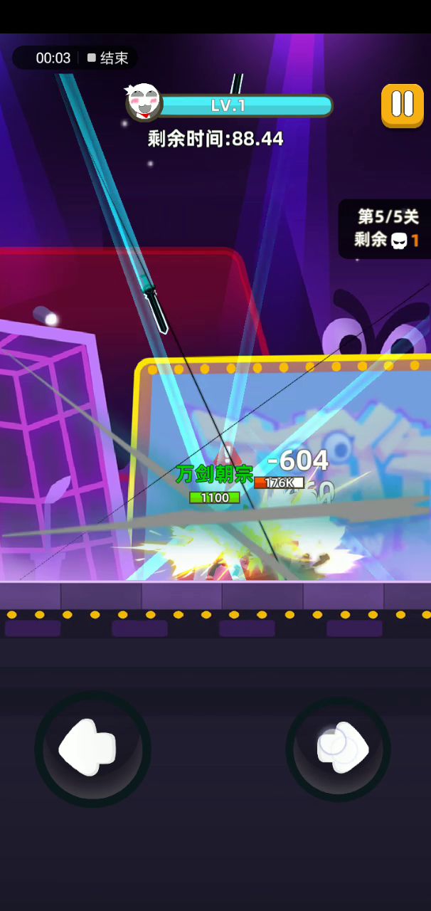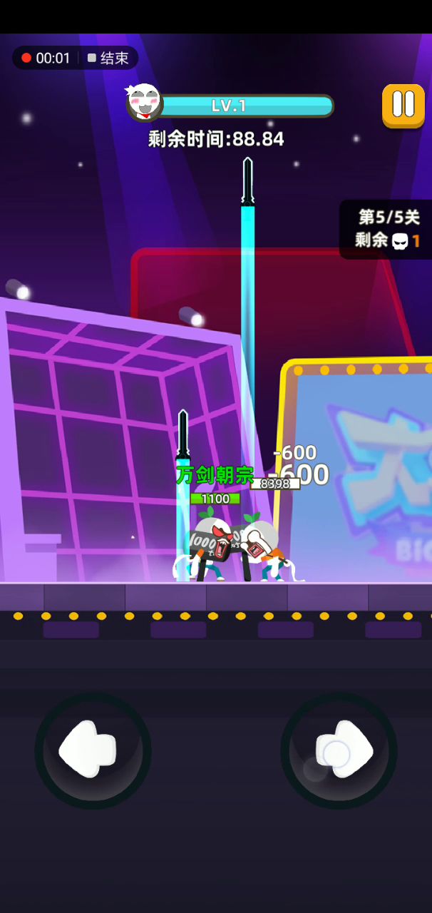 王尼玛VS王尼玛7 只要血不是太薄,加个吸血,王尼玛的普通攻击都阔以挨一下。王尼玛上天后有两种攻击方式,一种是召唤小兵,好对付,在此不说,别一种是丢哈,躲避它需要向前跑两下,第二波丢哈时要跑到第一个那里给自己腾位置,完成后王尼玛从你左边出来