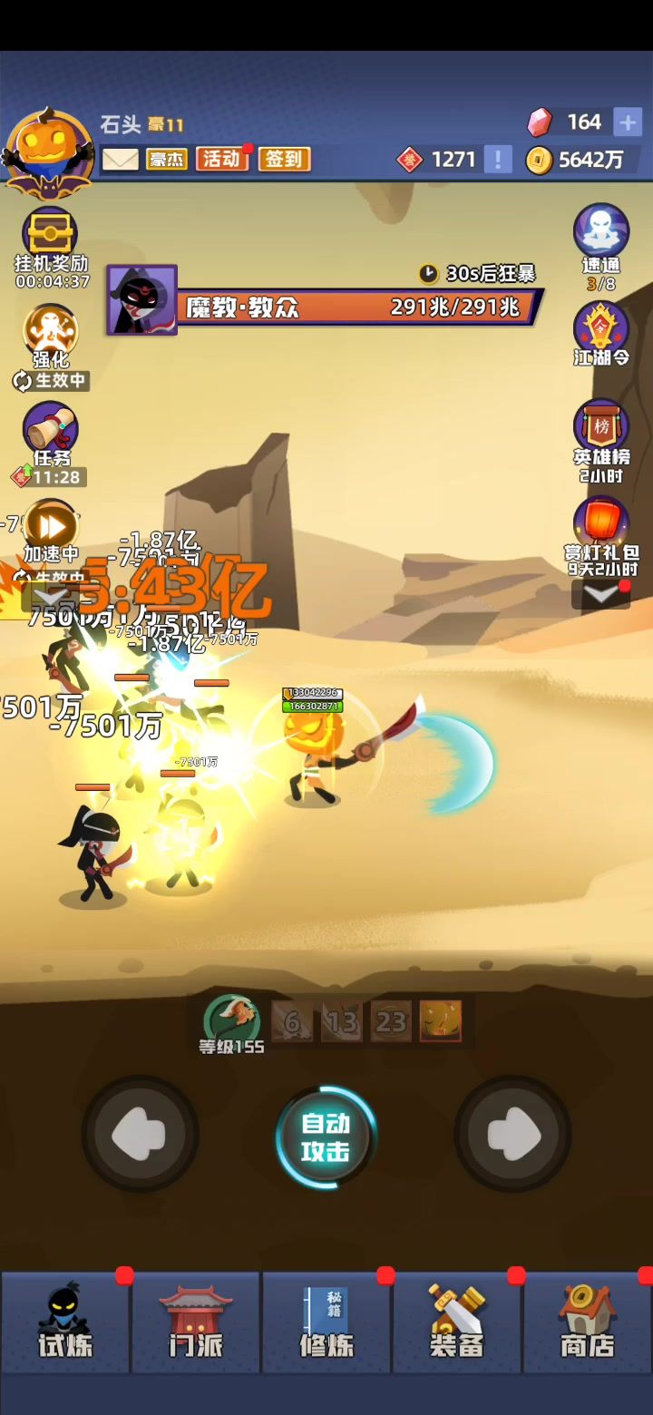 基本到了被一刀秒的地步了,浩然已经用了,通关还是很极限的。60多M图内攻击,还是挺高的。