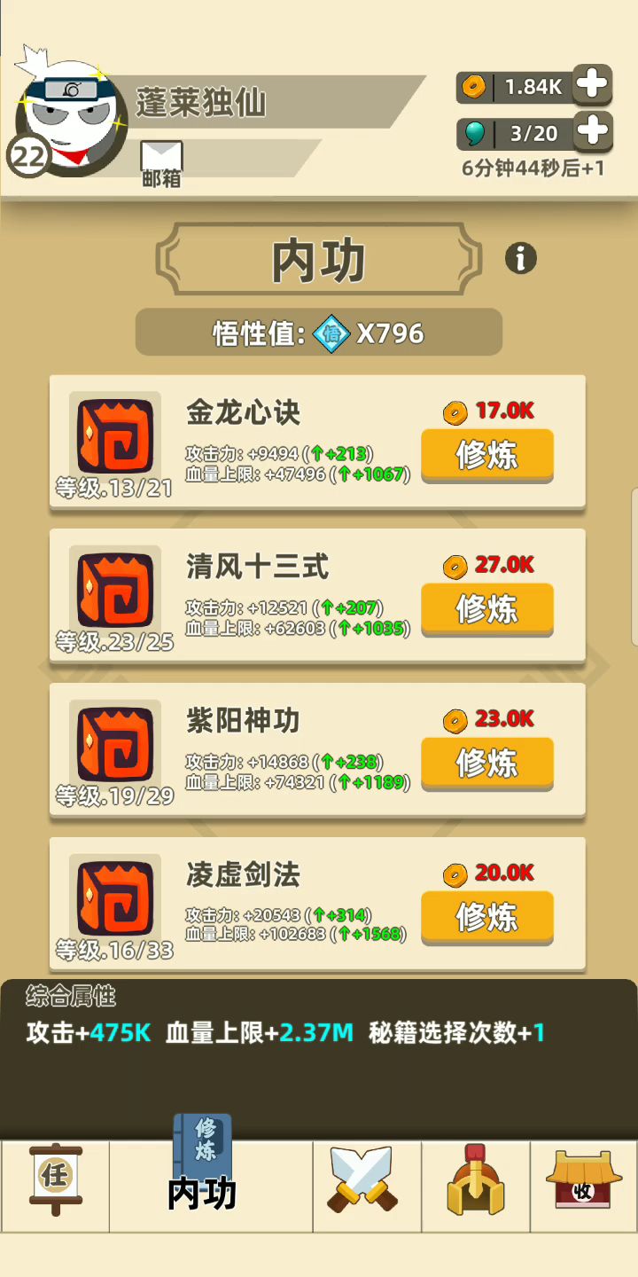 悟性太少内功选择太多不知道怎么点?没关系,看我就知道! (更多视频攻略可关注抖音官号:我功夫特牛)