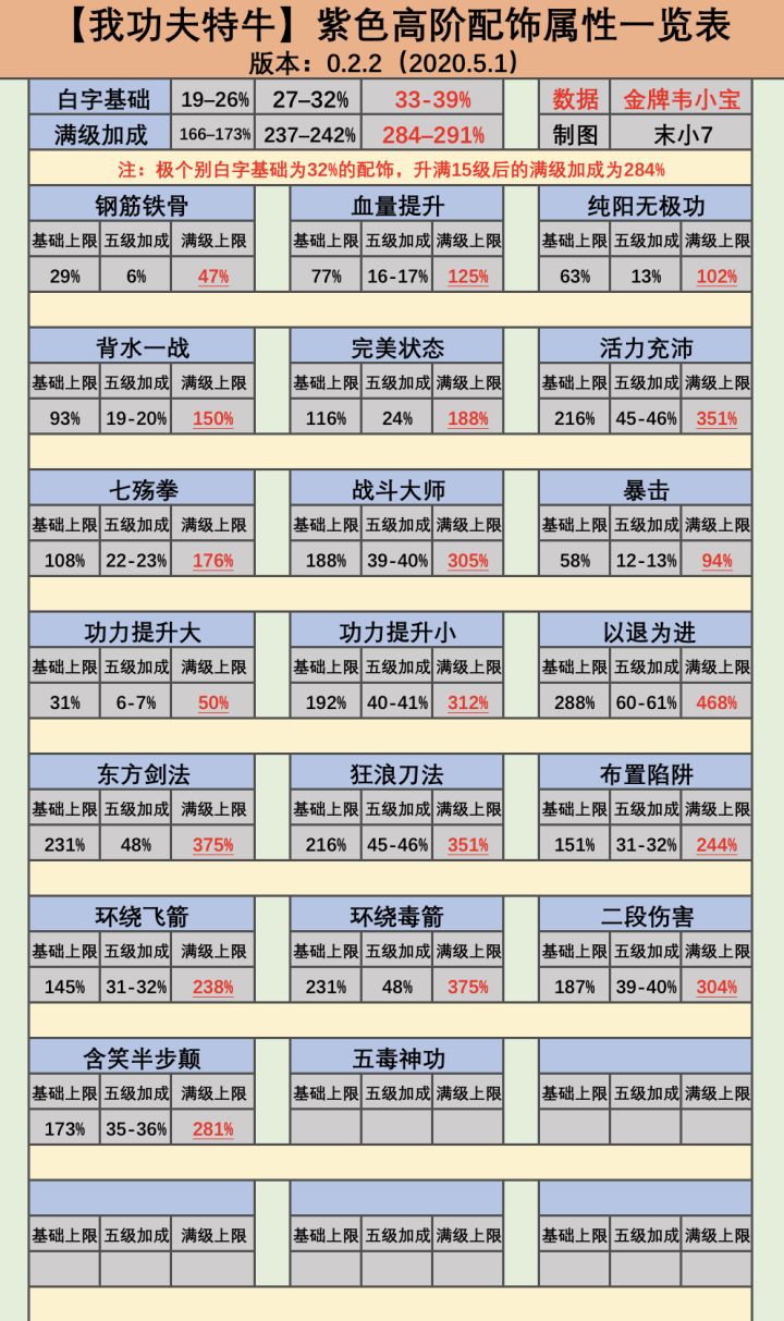 我功夫特牛史诗高阶配饰属性表(5月1日版)