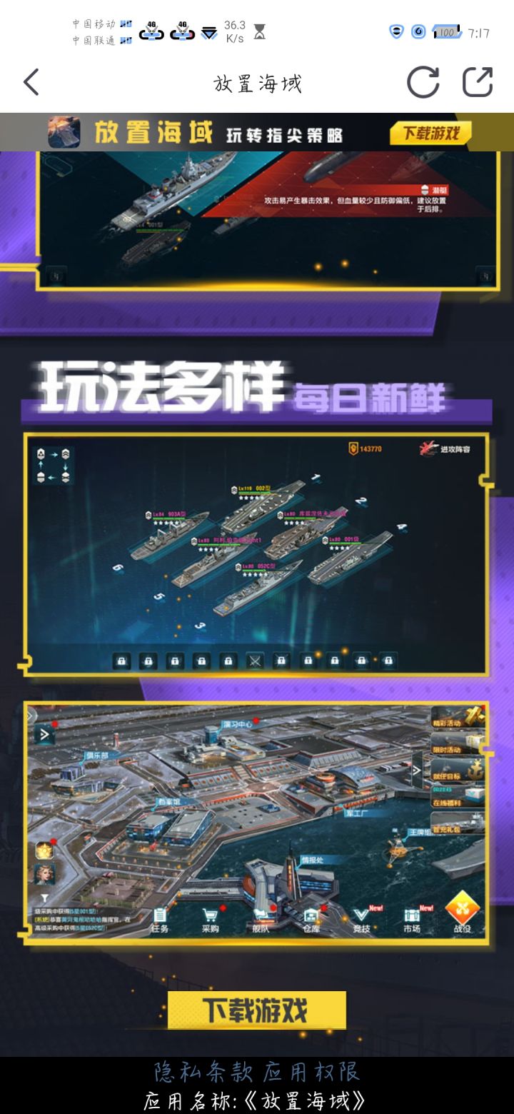 《放置海域》是一款以海军军事为主题,包含架空元素,以平行世界中近现代海军舰艇为养成主体的策略放置卡牌游戏。手游将传统放置类卡牌养成玩法与海军军事背景相结合,让玩家既能在游戏中运筹帷幄,策略编队战斗,又能在游戏中真实感受到近现代战舰的所向披靡。作为一款以军事爱好者为受众群体的游戏,《放置海域》在游戏内容上最大限度的做到了尊重历史、把握事实。游戏中的每一艘战舰都有着特殊的意义,它代表着一段历史,以及