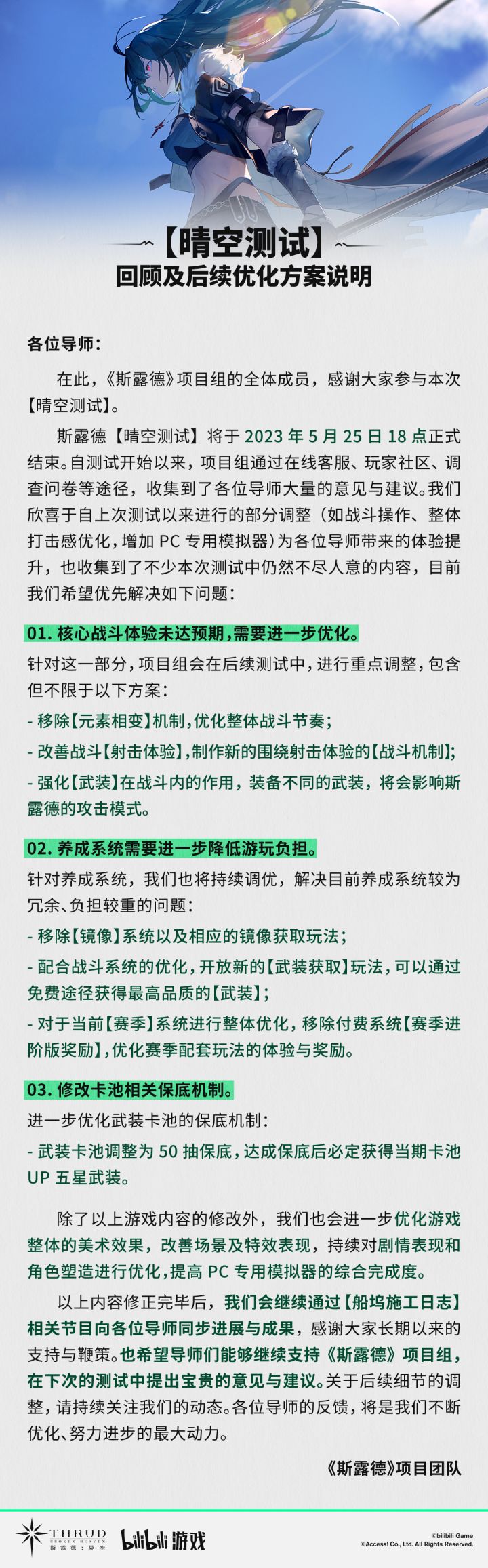 「晴空测试」即将结束,非常感谢各位导师对本次测试的关注与支持,谢谢大家愿意付出宝贵的时间,将目光停留在我们《斯露德》身上,并积极给予我们反馈。在此,斯露德项目组全体成员,再次对导师们献上真挚的感谢。测试期间,项目组收到了许多来自导师的建议,我们都进行了记录思考,并围绕问题进行了多次内部讨论,就各位导师对「晴空测试」期间的反馈,我们想先简单与大家分享一下《斯露德》后续预计的优化调整方向。感谢您的