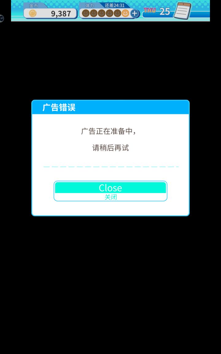 唔,体力很少诶很快就用完了,然后我现在想看广告恢复都看不了,怎么回事?这个打工也不让我跳过,没体力就硬卡在这,要等很久才能回复,你这样还怎么让别人玩呢?
