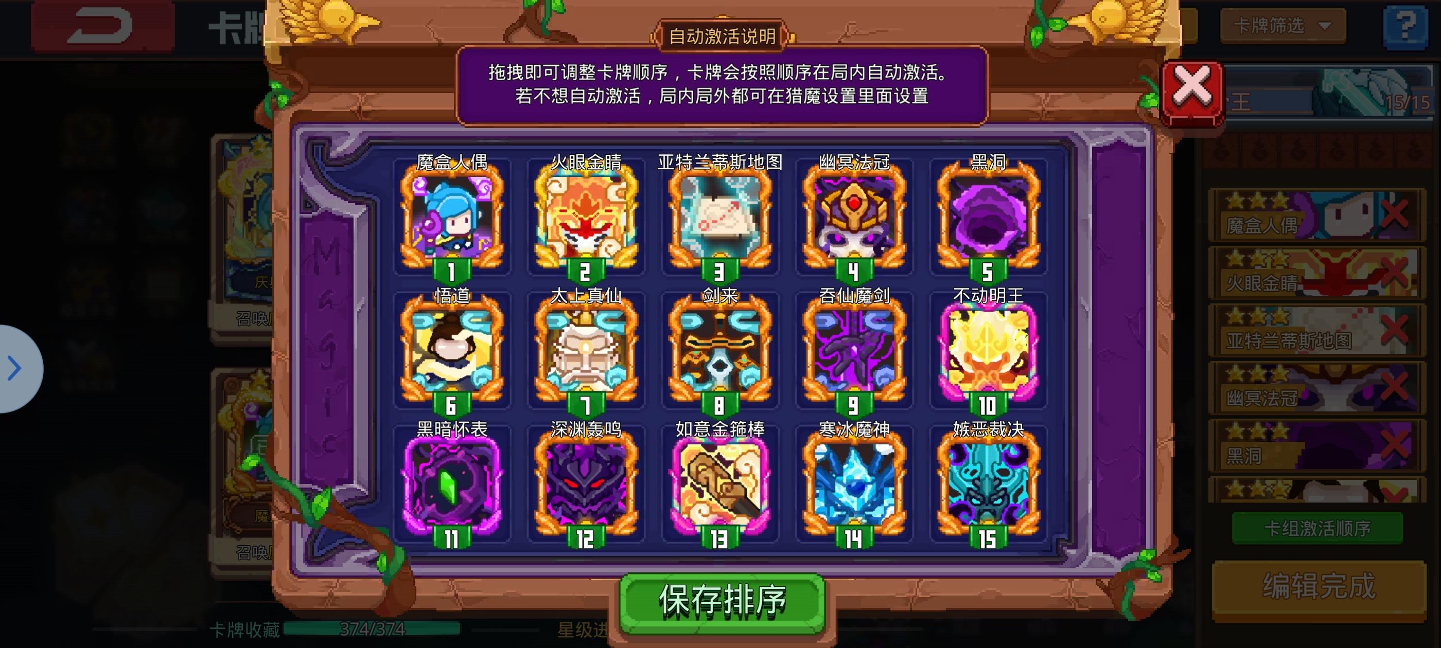 首先,卡组: 激进派: 唯一的防御卡琉璃,放到了第十位。一般二BOSS点不到琉璃,所以建议带个仙衣弥补前期防御能力的不足,和制造秒杀的机会。如果运气差,点不出九的卡组合,那就和boss拼了![表情_开心]带双星是因为我带了御剑印记,并且带浮尘的时候感觉打眼睛的时候会变慢,带了双星顺畅很多。 保守派: 先激活拂尘组合,再点出琉璃,稳字当头。但是我个人试了几次,没有激进派打鹿的输出高,并不能秒鹿,而且