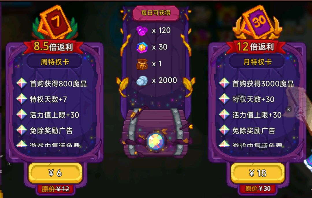 首先,宇宙安全声明:本贴仅作为高性价比付费项目推荐参考,并非鼓励氪金,适用于愿意为游戏内容付费且有“把钱花在刀刃上”需求的玩家,八十万禁军教头豹子头林冲以及富哥富姐们无视即可[表情_致敬]。 1、首购周卡、月卡 6r+18r 半价的折扣以及首购赠送的800、3000魔晶都把周、月卡的性价比抬到了不属于它的高度。 续购的周、月卡除了让人感叹由奢入俭难之外,约等于依托,性价比低得令人发指,希望官方能做