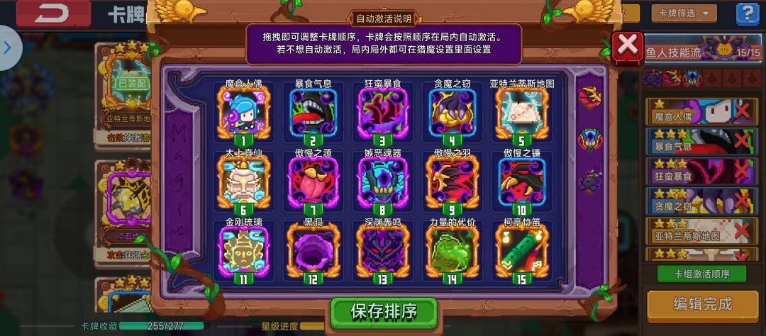 分享一套自用33 挖矿……唯一要求满星的琉璃……我其他都是 1 星或者 2 星的卡,魔印最高也就是橙色的仙门之力。我是全图都刷了没进过城镇,过城镇速度应该还可以在快一点。图一激活变身 3 件套以后,记得手动激活卡组刷个地图,地图选 CD 和法阵时间, 然后在自动。图内宝物 CD。CD 满了以后可以不开箱子,不需要宝物,技能好了就用。可以无伤刷……觉得有用的可以照抄
