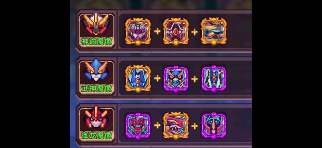 神谕魔像--以太机甲(枪炮原型)首推大娃 武神魔像--武神机甲(刀剑原型)其次水娃 御龙魔像--御火机甲(拳拳到肉)最后火娃 三大机甲大概介绍完毕,下面说一下注意事项 1)三种机甲变身的前提是点完对应的三张卡牌,否则只有手臂部分有变身效果 2)变身器是激活掉落,同法杖需要捡起来,不要切换武器的时候切掉了。甚至平A的模型都是法杖原型,必须狠狠的吐槽变身器的掉落设置 3)爆机是因为负荷运作导致,也就是